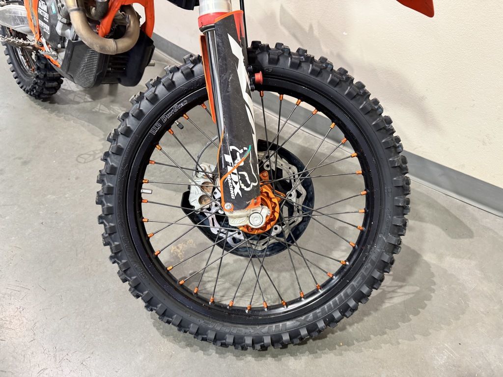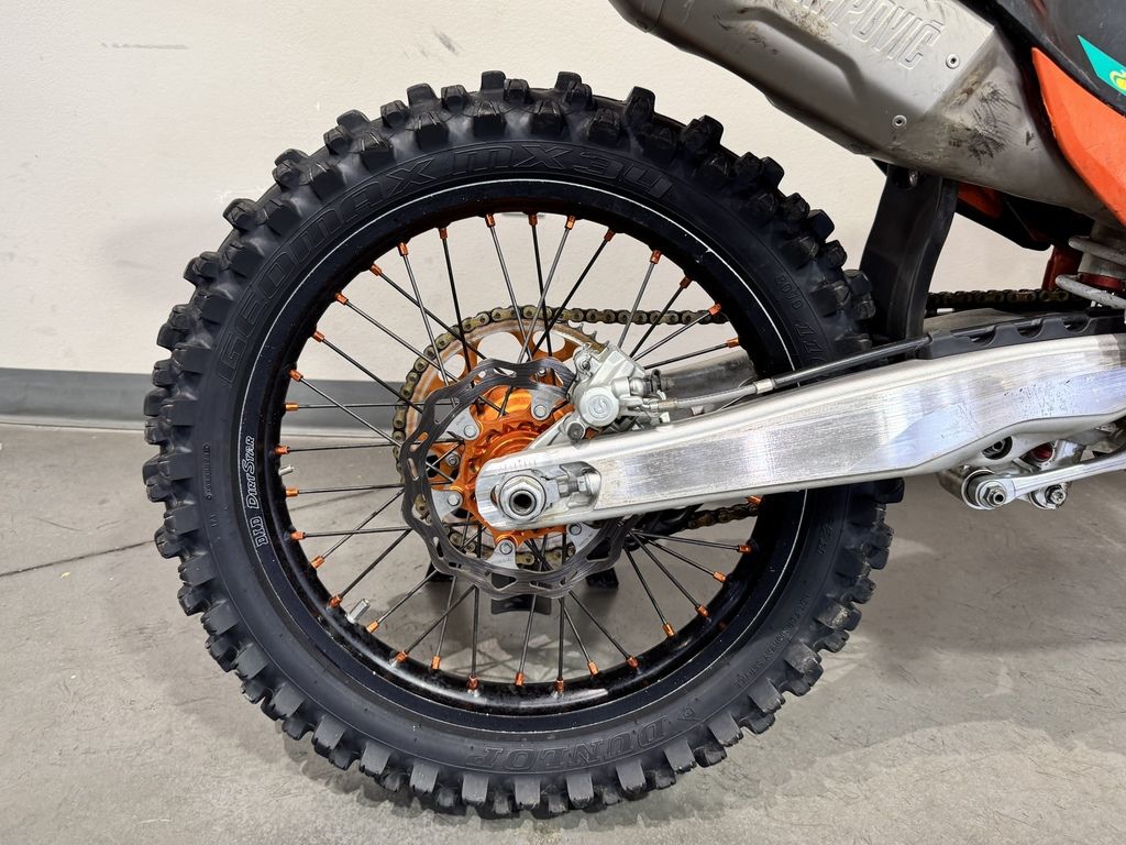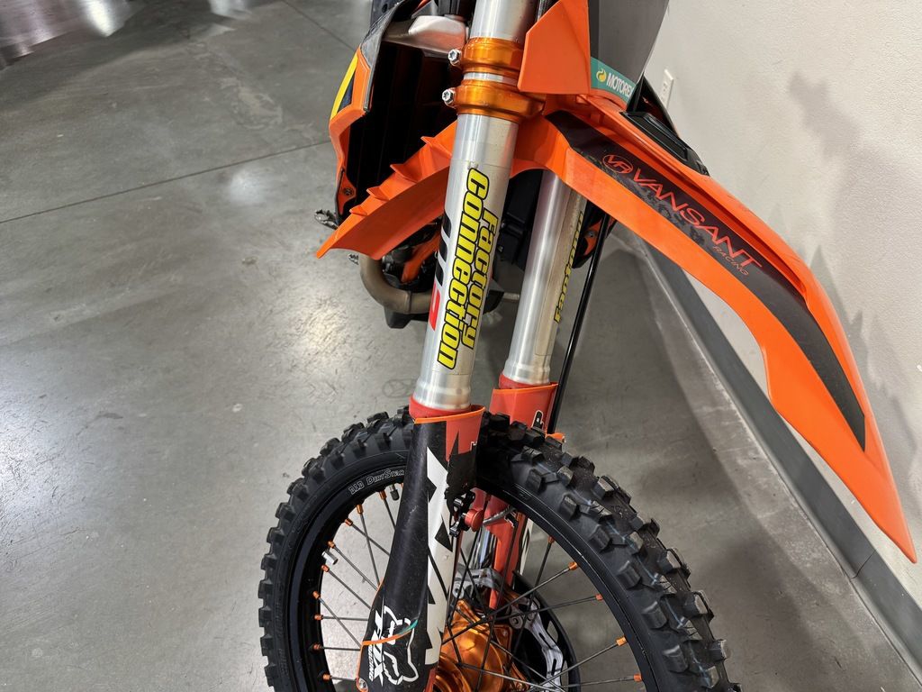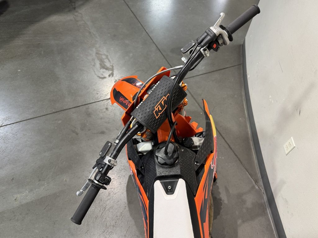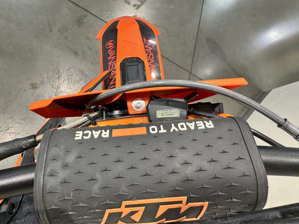 BEFORE THE GATEGet dialed in! The 2024 KTM SX range boasts totally tool-free suspension setup at both ends. Thanks to the shock absorber design featuring hand-adjustable dual compression control, it allows riders to adjust high- and low-speed settings in a matter of seconds. On the front end, the forks are also easily adjusted thanks to a single air pressure preload valve, as well as through easy access click adjusters for compression and rebound. We'll even throw the air pump in as standard.