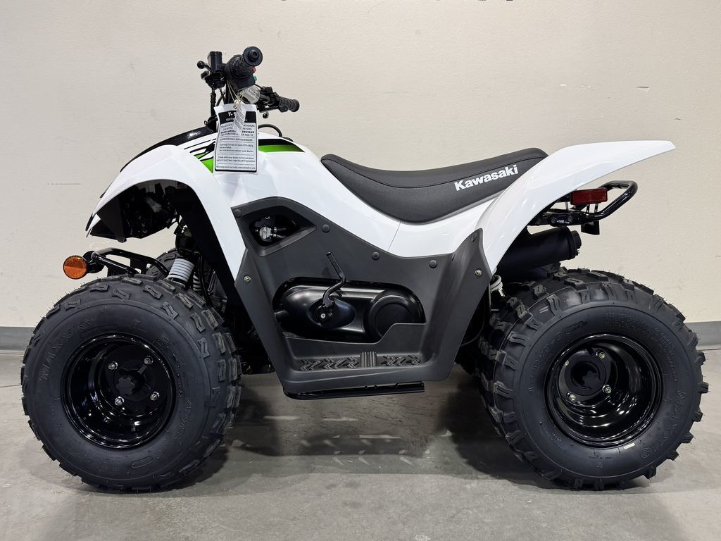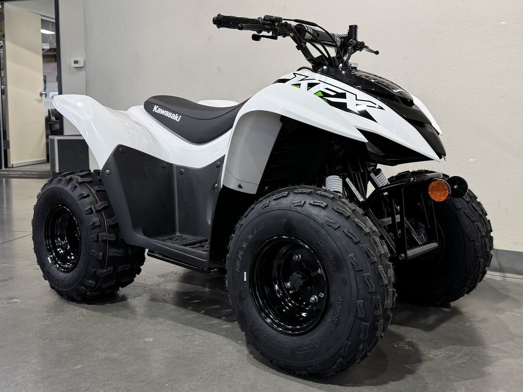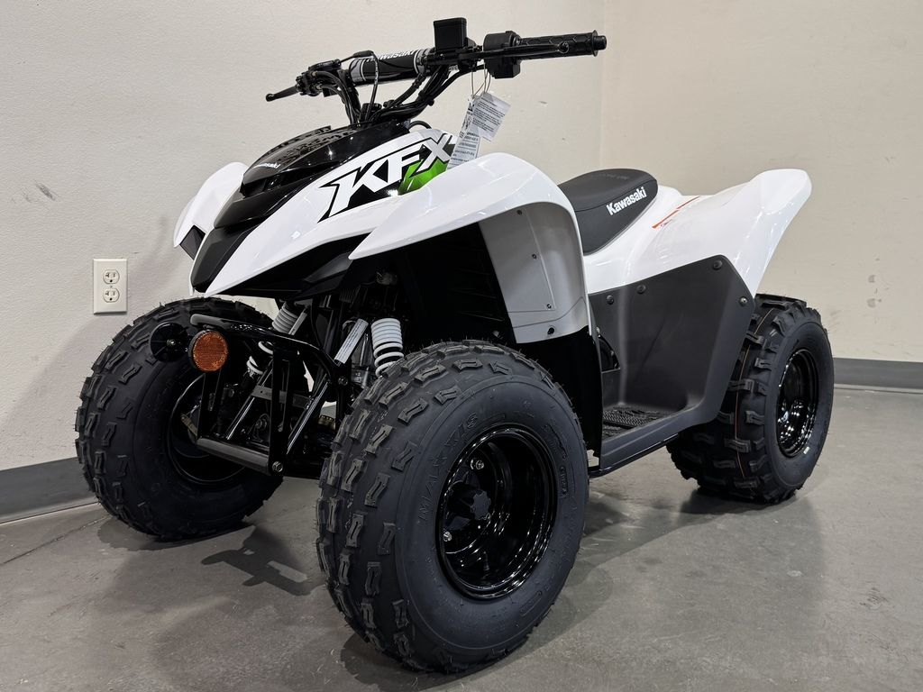 Four-wheel fun starts with KFX®. Get the kids outdoors and ready to ride on the KFX®90 ATV line with proportionate power and size for riders ages 10 and older. KFX90 ATVs let kids take on more challenging tracks and bigger adventures with an 89.9cc engine and sporty suspension.