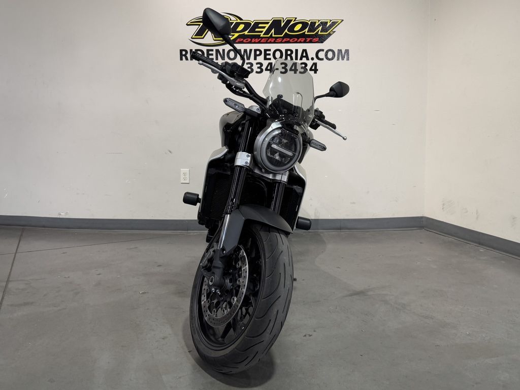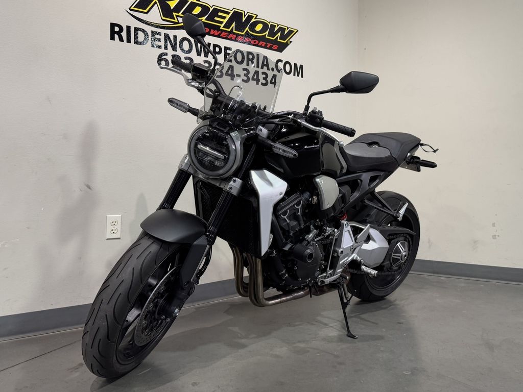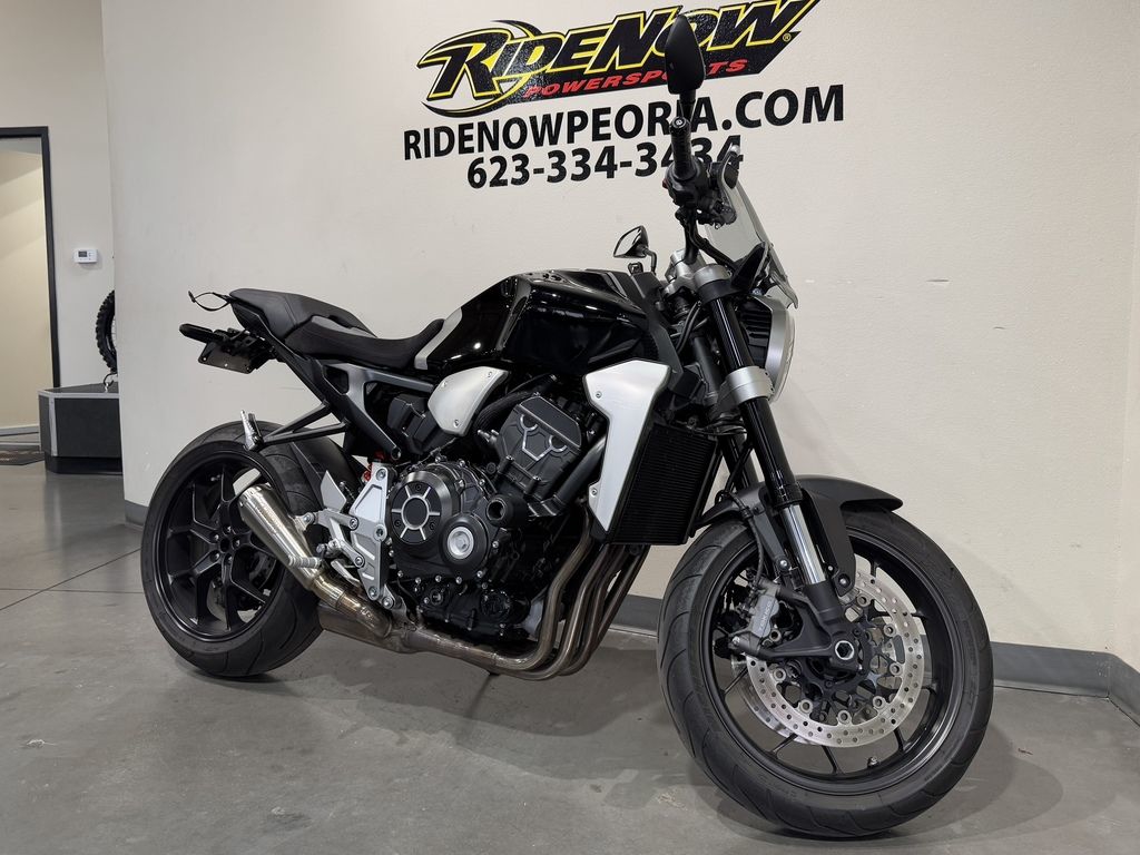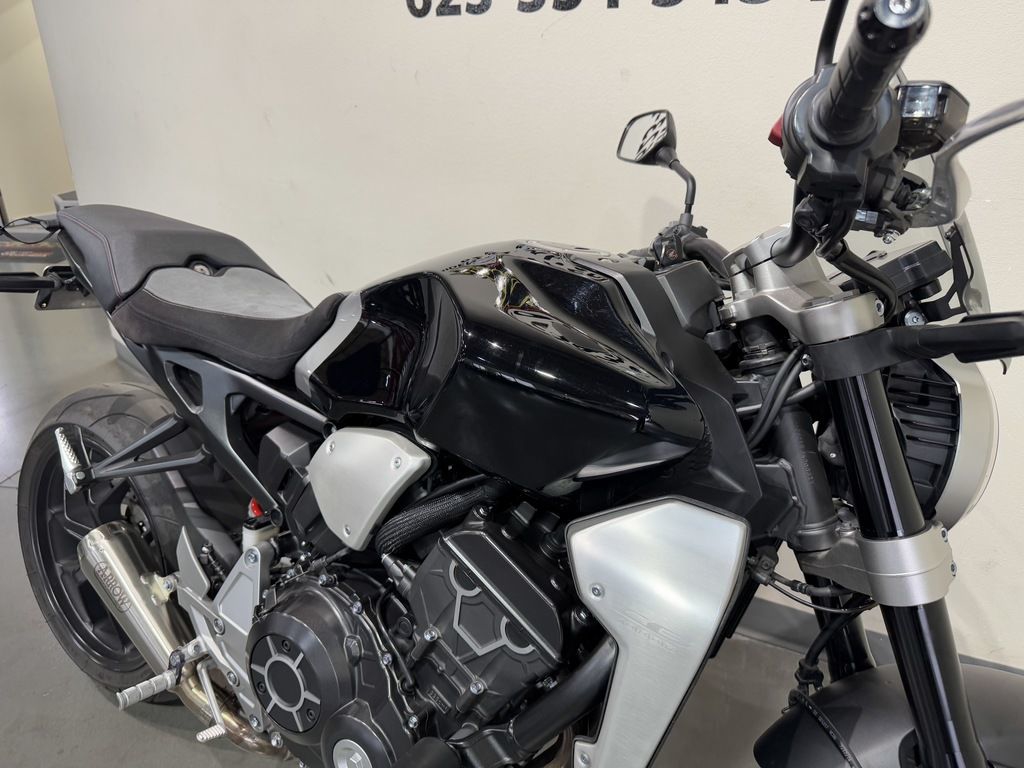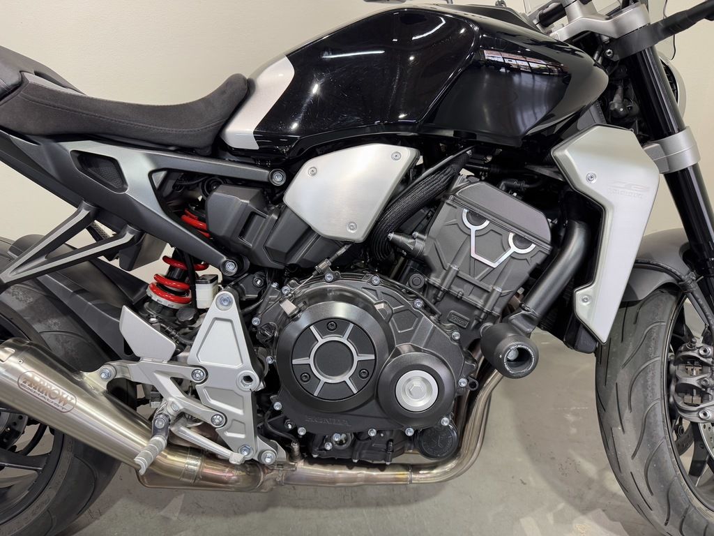 There’s just something about a big inline-four streetbike without any bodywork. The engine and chassis on display for the whole world to see—no excuses given or needed. It’s all business, and you never get tired looking at it. Plus, it’s light, powerful, and responsive. And our all-new CB1000R is the best open-class naked streetfighter we’ve ever produced. It’s like a triple-shot of espresso for your motorcycling soul. You get a high-revving 998cc four-cylinder engine that’s specially tuned for midrange and top-end power. Cutting-edge Neo-Sports Café styling, an updated chassis, an improved electronics package, and a relaxed, more open riding position. The new 2018 Honda CB1000R. Sometimes, less really is more.