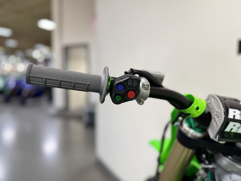 The KX™450X motorcycle's advanced controls are streamlined for rider convenience. Kawasaki TRaction Control (KTRC), Power Mode Selection, and Launch Control Mode are available at the push of a button. These features enable riders to quickly adjust power delivery and traction for riding conditions and preference. The KX450X provides advanced technology designed to inspire confidence.