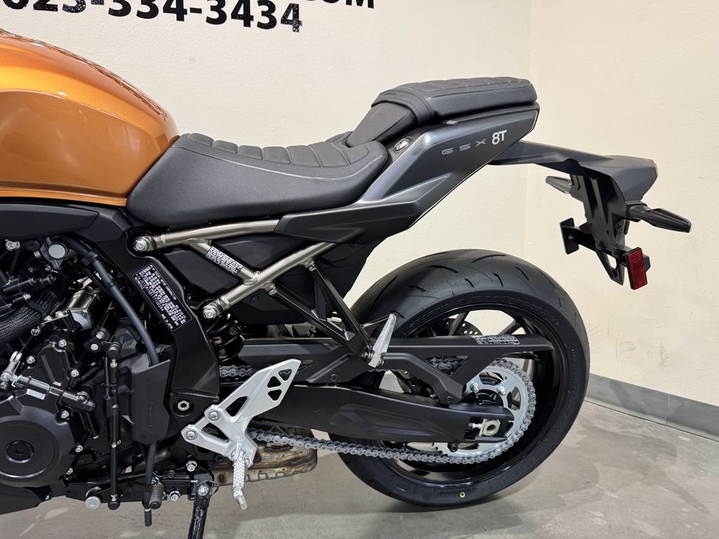 The GSX-8T utilizes Suzuki’s latest-generation 776cc parallel twin engine, known for its strong torque delivery and proven performance in the GSX-8S and GSX-8R. Paired with electronic rider aids such as Bi-directional Quick Shift system and traction control, it offers modern technology in a rider-focused package that truly embodies the concept of “Retro Spirit, Next Generation Performance.”