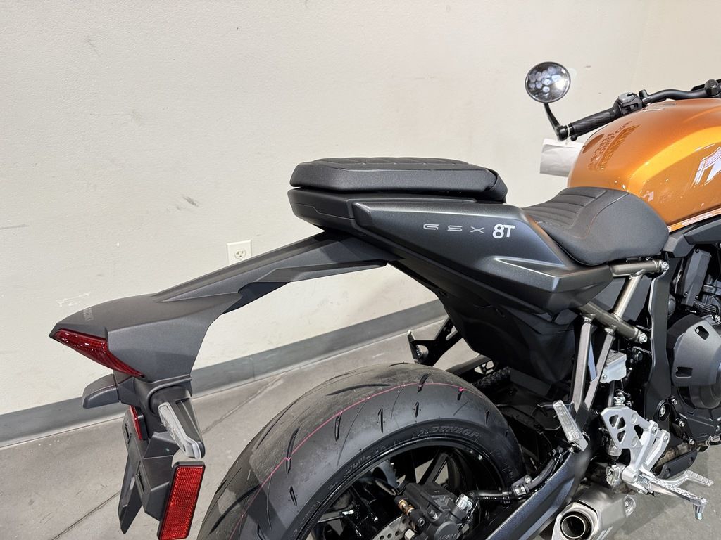 • With an exclusive tuck-and-roll appearance, the GSX-8T’s seat features classic contours and a refined surface texture for a premium look and feel. A careful sculpture of the center and side foam yields a seat which provides superb overall support and a sure knee grip while delivering long-distance comfort.