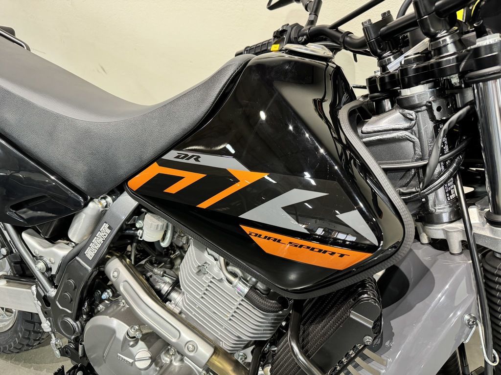 • With Solid Black and Solid Gray bodywork with contrasting black and orange graphics, or bright Solid Special White bodywork that features distinctive blue and black graphics, the DR650S looks good when ridden on any surface.