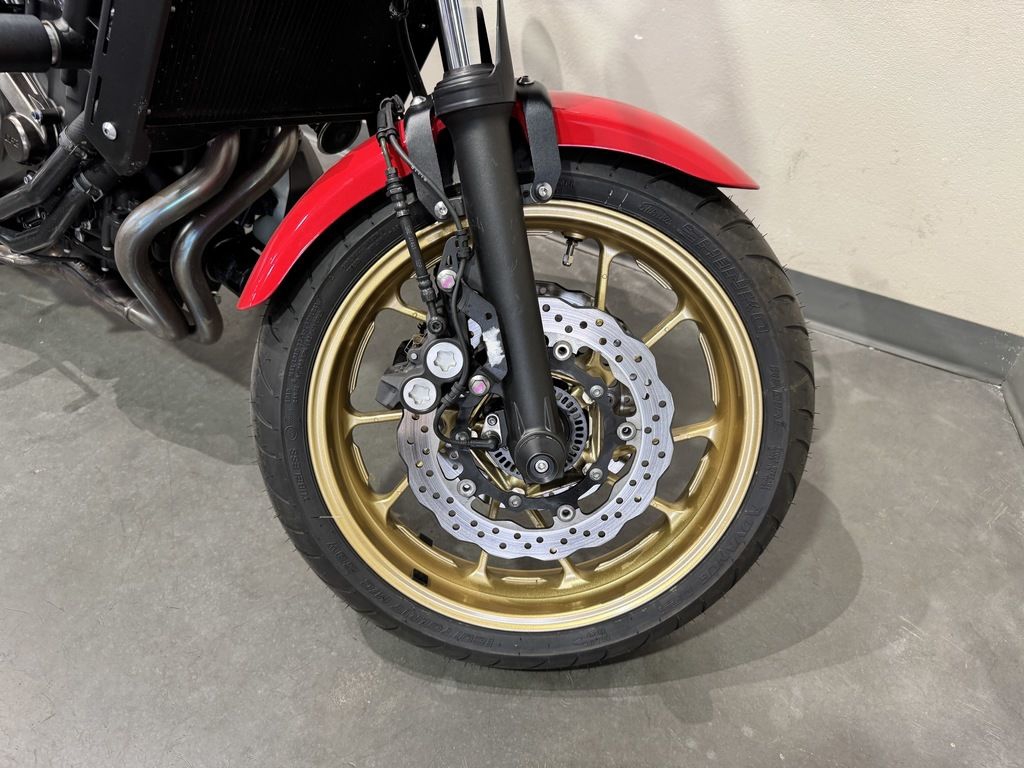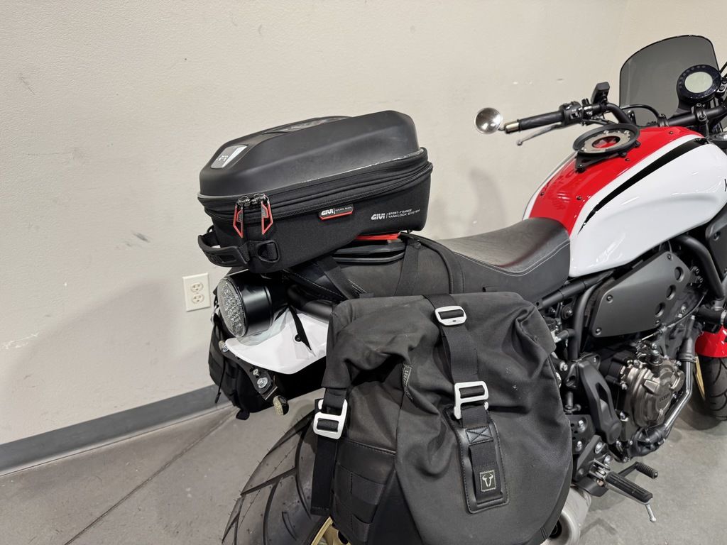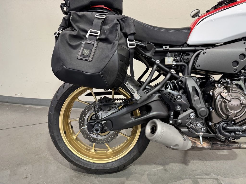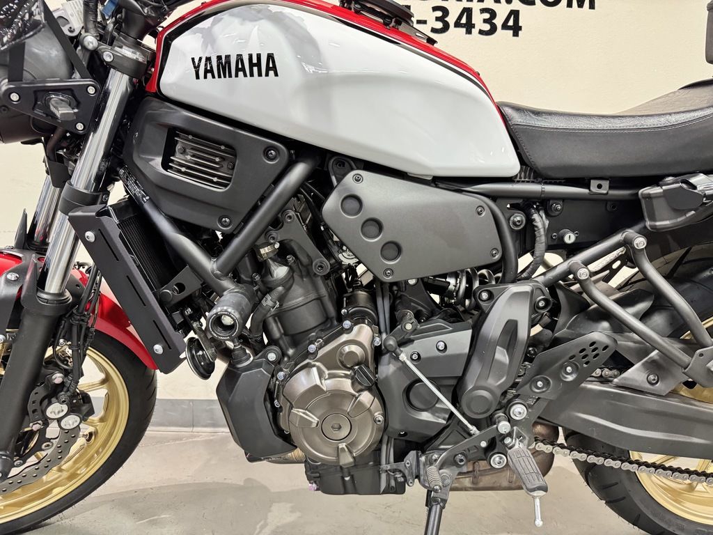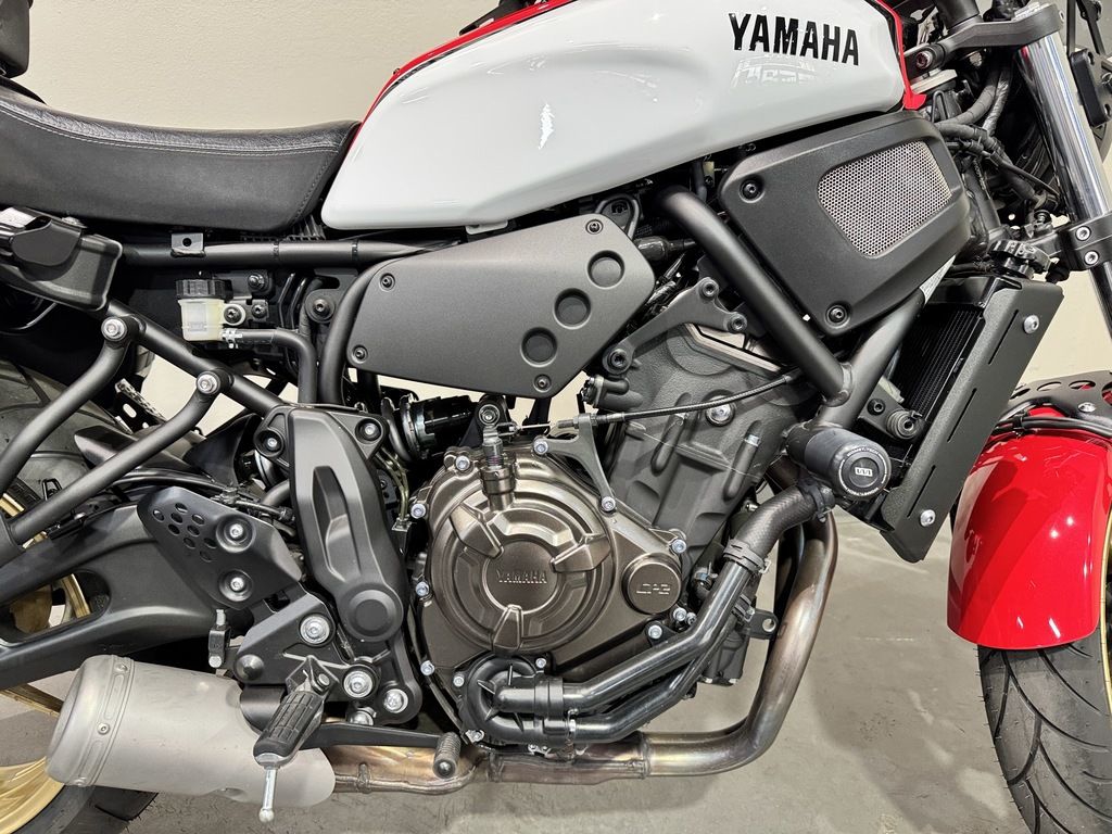 ENGINEThe XSR700 features a compact 689cc liquid-cooled, inline twin-cylinder, DOHC engine with fuel injection. This engine provides a unique power character with its outstanding low- to mid-range torque and very linear throttle response and complemented with strong high-rpm pulling power. This motor develops 50 foot pounds of torque and is designed to maximize riding excitement in the real world.
