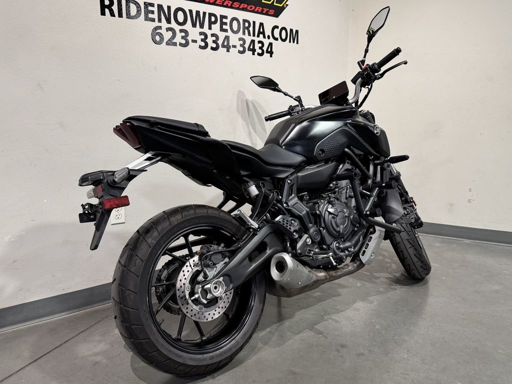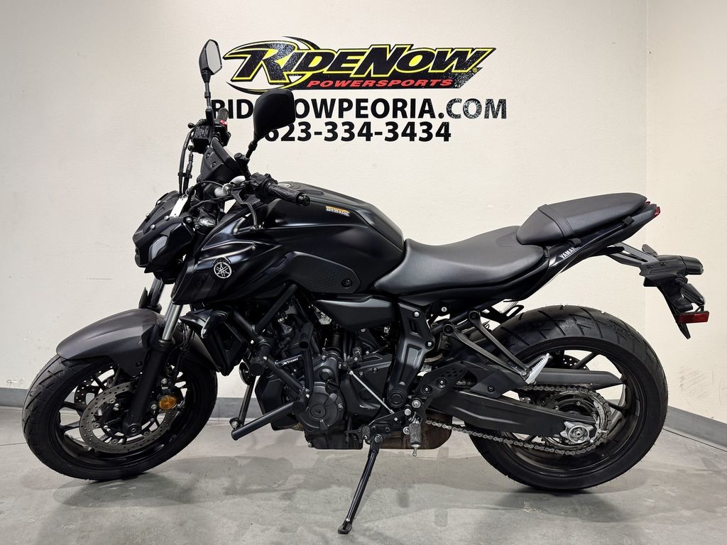 ADDITIONAL FEATURESThe MT-07's aggressive look further enhances its distinctive appeal. Bold colors and graphics integrate with the minimalist stripped-back design and structural elements to emphasize pure Hyper Naked character. With a silhouette that is synonymous with the MT Series' signature statement of torque and power, the MT-07 showcases a tight, compact and powerful appearance.
