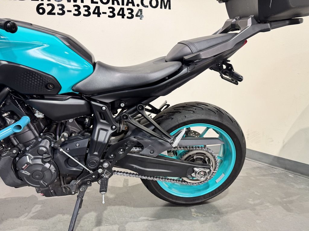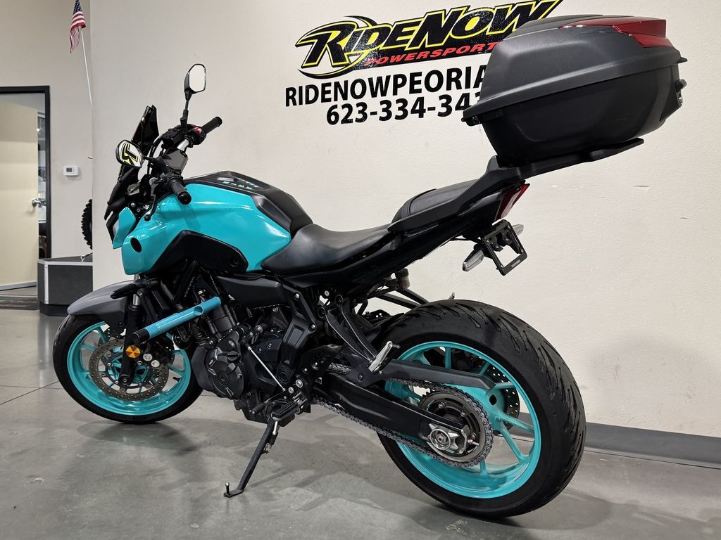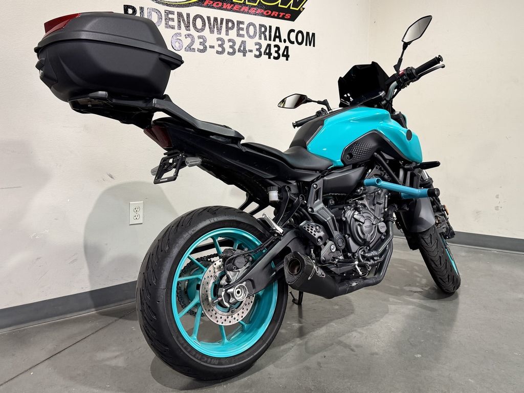 Joining the 3rd generation MT style - as featured on the MT-09 - the MT-07's new look further brings out its distinctive appeal with fashion-leading colors and graphics. The newly designed parts and components are integrated with minimal structural elements, creating an attractive design that emphasizes pure Hyper Naked character. With a silhouette that is synonymous with the MT Series' signature statement of torque and power, the MT-07 showcases a tight, compact and powerful appearance.