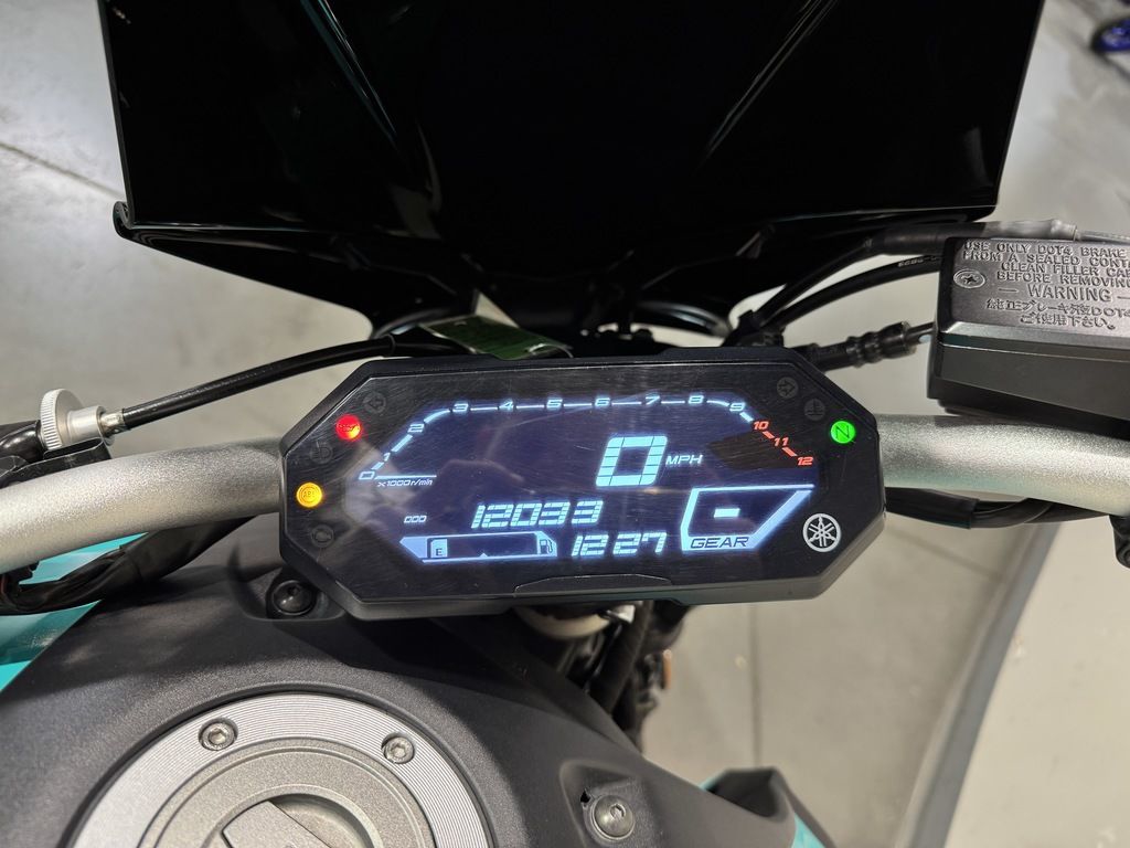 ADDITIONALThe MT-07 features a new multifunction negative-display LCD dash with a black background and white readouts while RPMS of 10k - 12k are indicated with a red color. Designed specifically for the MT-07's cockpit, the arrangement of the information features a larger display for the clock, current gear, trip/odometers and tachometer. Trip 1, Trip 2 and Trip F, the temperature and other meter functions can be toggled and reset with the left handlebar thumb switch while key displays like the gear indicator are on the right while the tachometer are positioned along the top.