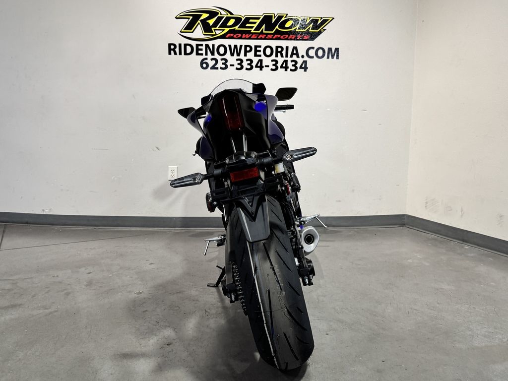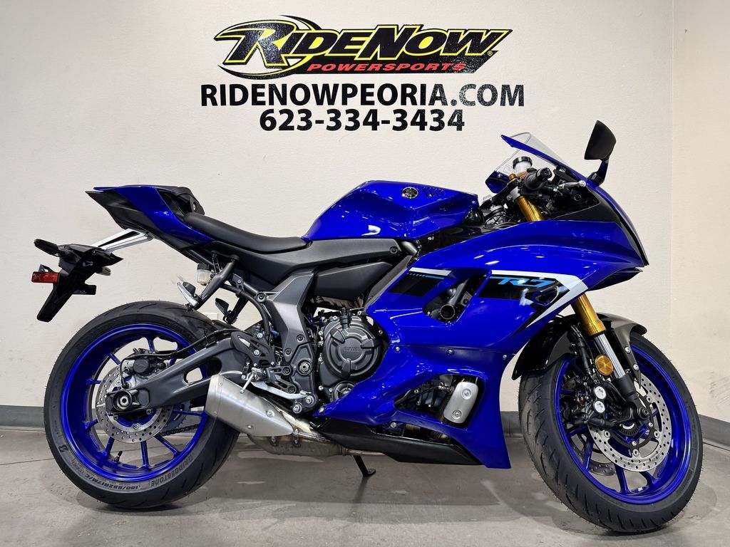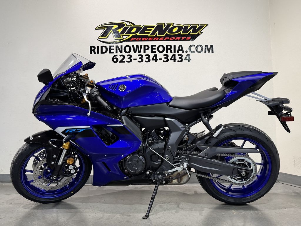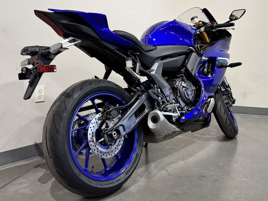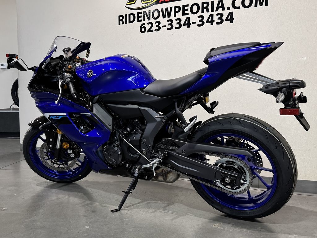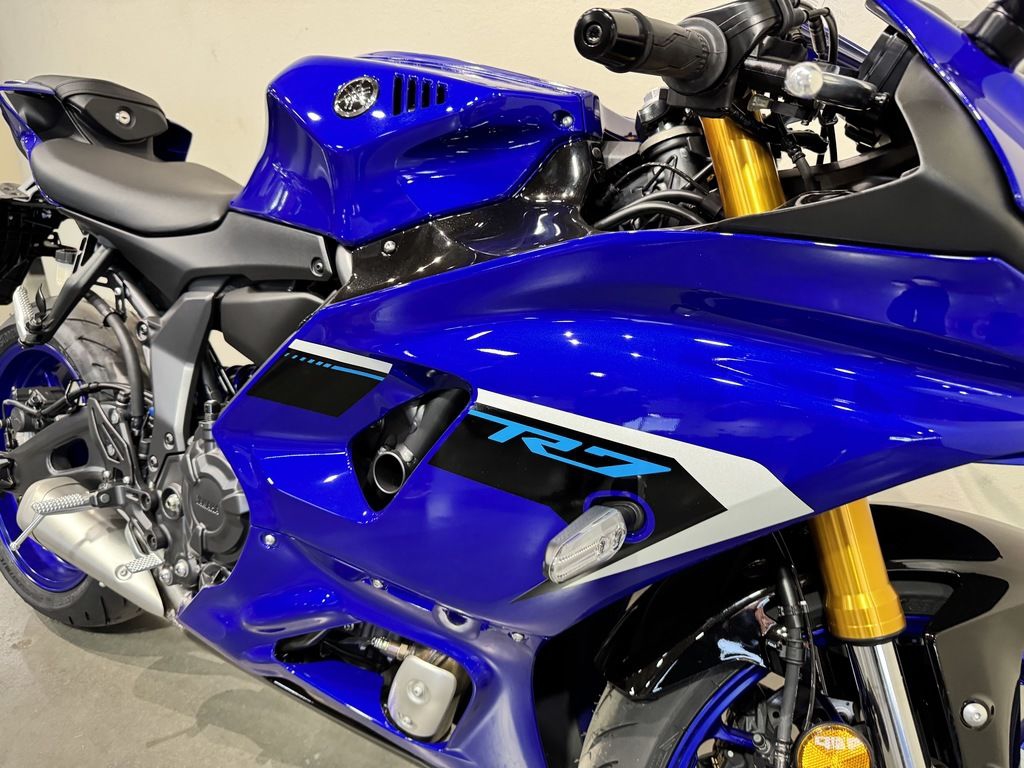 The YZF-R7's aggressive design boasts the slimmest bodywork in the Supersport lineup for optimal aerodynamics, handling and agility, while the signature M-shaped duct and tail wing are reminiscent of Yamaha's flagship Supersport YZF-R1.