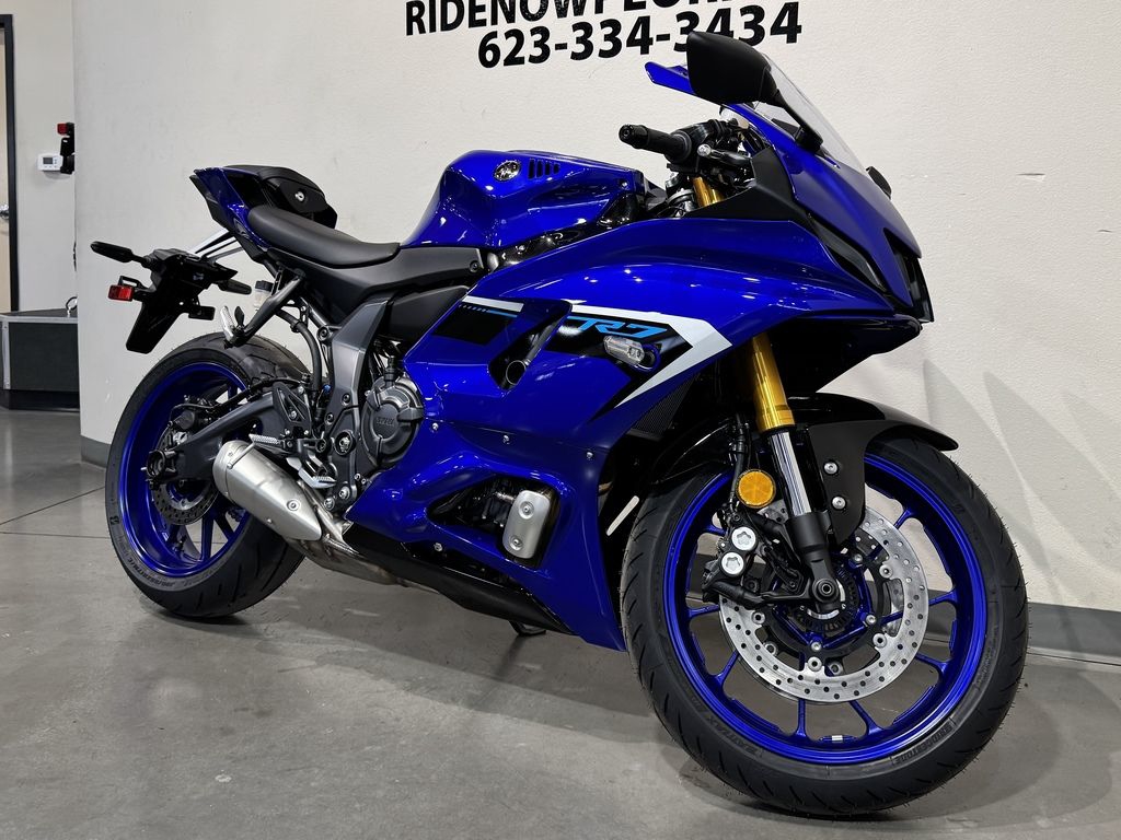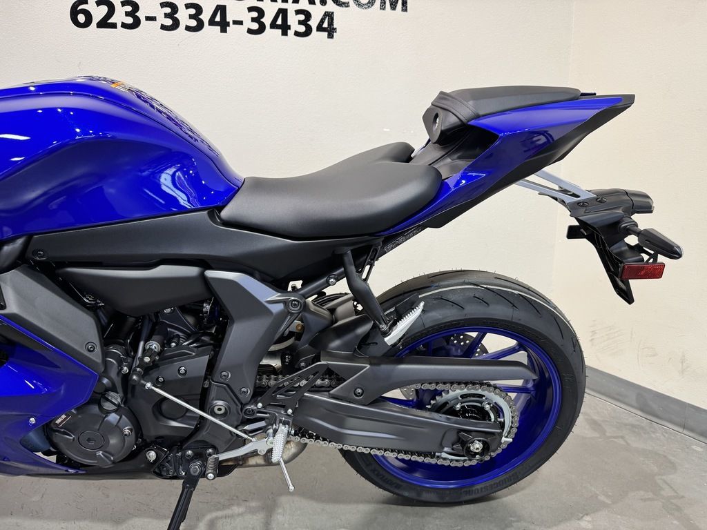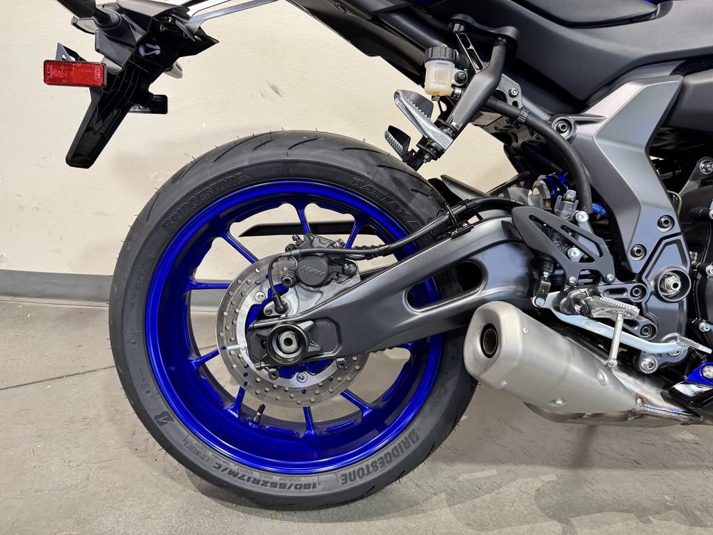 The YZF-R7 features an inverted 41mm front fork with optimized spring rate and damping settings for an excellent front-end feel during cornering and braking. The linked-type Monocross single-shock with adjustable spring preload and rebound damping strikes an ideal balance between ride comfort and Supersport performance for capability across a wide range of uses from urban commuting to track days.