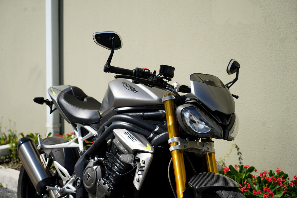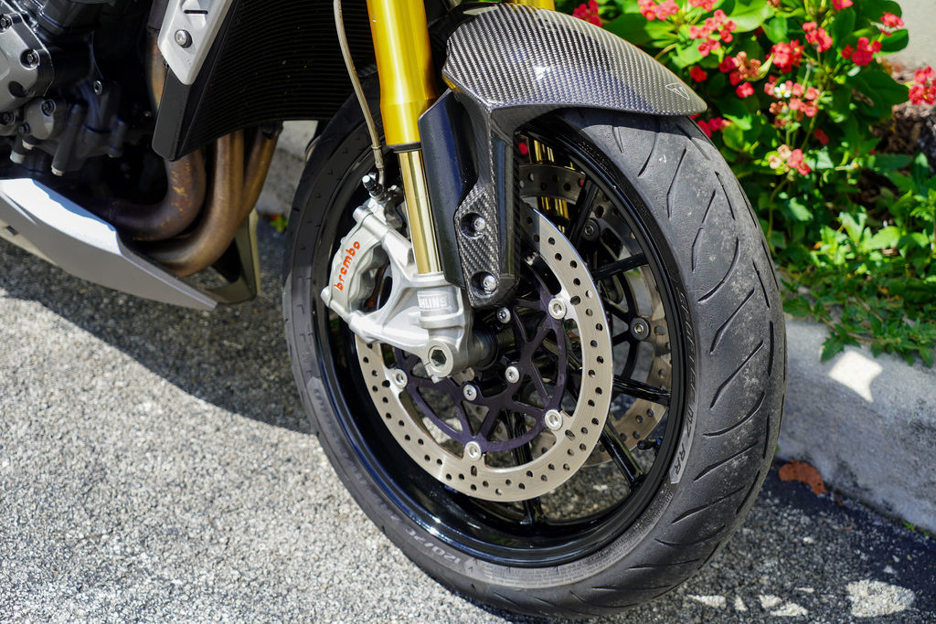 In keeping with the Speed Triple’s uncompromising character, the RS includes new cast alloy wheels with a high-gloss finish, high specification Pirelli Diablo Supercorsa tires and twin disc front brakes with Brembo Monobloc calipers exclusively tuned to reflect the urban sports focus.