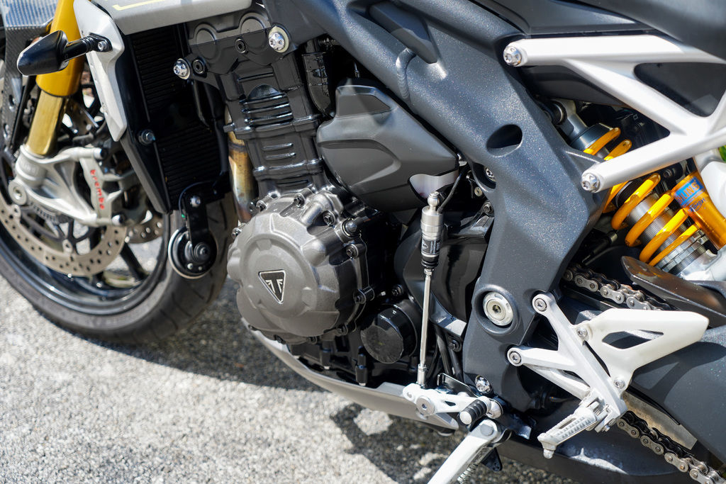 The Speed Triple’s new advanced keyless ignition and steering lock system recognizes the proximity of your fob before activation is initiated. For additional security, you can turn off the transmitting signal to disable the keyless function when not in use.