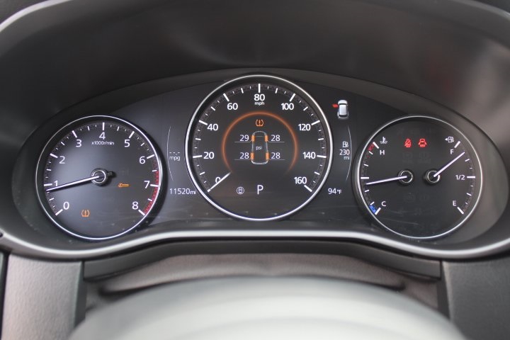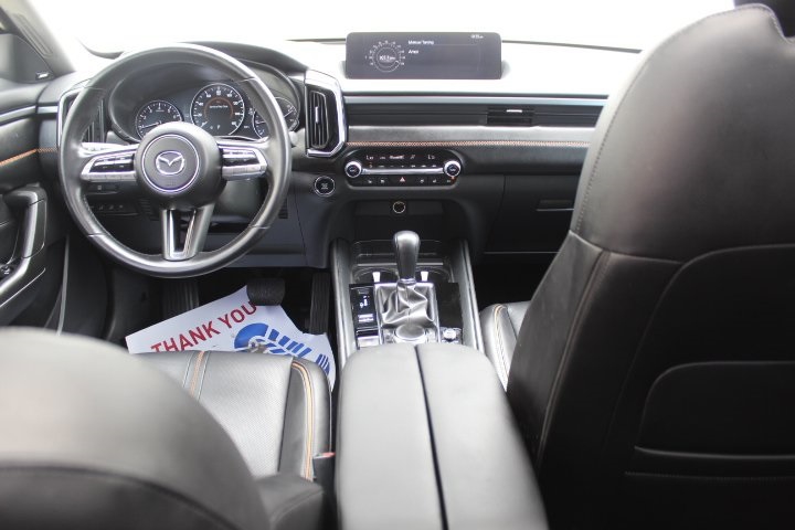 12 Speakers, 20" x 8J Aluminum Alloy Wheels, 4-Wheel Disc Brakes, 4.367 Axle Ratio, ABS brakes, Air Conditioning, Alloy wheels, AM/FM radio: SiriusXM, AppLink/Apple CarPlay and Android Auto, Auto High-beam Headlights, Auto-dimming Rear-View mirror, Automatic temperature control, Brake assist, Bumpers: body-color, Delay-off headlights, Driver door bin, Driver vanity mirror, Dual front impact airbags, Dual front side impact airbags, Electronic Stability Control, Emergency communication system: MAZDA CONNECT, Exterior Parking Camera Rear, Front anti-roll bar, Front Bucket Seats, Front Center Armrest w/Storage, Front dual zone A/C, Front reading lights, Front wheel independent suspension, Fully automatic headlights, Garage door transmitter: HomeLink, Heads-Up Display, Heated & Ventilated Front Bucket Seats, Heated door mirrors, Heated front seats, Illuminated entry, Knee airbag, Leather Seat Trim, Leather Shift Knob, Leather steering wheel, Low tire pressure warning, Machine Gray Metallic Paint Charge, Memory seat, Occupant sensing airbag, Outside temperature display, Overhead airbag, Overhead console, Panic alarm, Passenger door bin, Passenger vanity mirror, Power door mirrors, Power driver seat, Power Liftgate, Power moonroof, Power passenger seat, Power steering, Power windows, Radio data system, Radio: AM/FM/HD Audio System, Rain sensing wipers, Rear seat center armrest, Rear window defroster, Rear window wiper, Remote keyless entry, Roof rack: xxxxxx, Speed control, Speed-sensing steering, Split folding rear seat, Spoiler, Steering wheel mounted audio controls, Tachometer, Telescoping steering wheel, Tilt steering wheel, Traction control, Trip computer, Turn signal indicator mirrors, Variably intermittent wipers, Ventilated front seats.