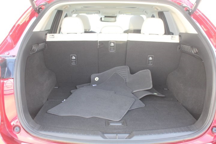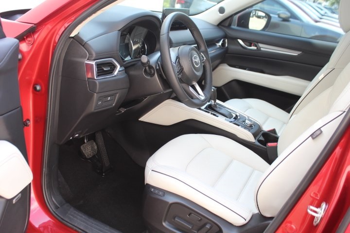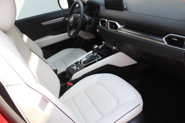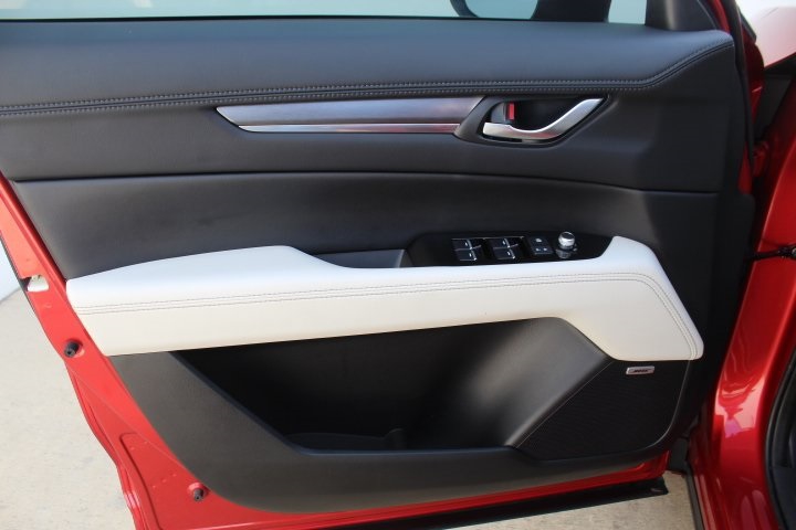 Mazda Certified Pre-Owned Certified, 10 Speakers, 4-Wheel Disc Brakes, 4.624 Axle Ratio, ABS brakes, Air Conditioning, Alloy wheels, AM/FM radio: SiriusXM, AppLink/Apple CarPlay and Android Auto, Auto High-beam Headlights, Auto-dimming Rear-View mirror, Automatic temperature control, Black Lug Nuts & Black Wheel Locks, Brake assist, Bumpers: body-color, Delay-off headlights, Driver door bin, Driver vanity mirror, Dual front impact airbags, Dual front side impact airbags, E911 Automatic Emergency Notification, Electronic Stability Control, Emergency communication system: MAZDA CONNECT, Exterior Parking Camera Rear, Four wheel independent suspension, Front anti-roll bar, Front Bucket Seats, Front Center Armrest w/Storage, Front dual zone A/C, Front reading lights, Fully automatic headlights, Garage door transmitter: HomeLink, Heated door mirrors, Heated Front Bucket Seats, Heated front seats, Illuminated entry, Infotainment System Voice Command, Leather Seat Trim, Leather Shift Knob, Leather steering wheel, Low tire pressure warning, Memory seat, Multifunction Commander Control, Occupant sensing airbag, Outside temperature display, Overhead airbag, Overhead console, Pandora, Panic alarm, Passenger door bin, Passenger vanity mirror, Power door mirrors, Power driver seat, Power Liftgate, Power moonroof, Power passenger seat, Power steering, Power windows, Radio Broadcast Data System Program Information, Radio data system, Radio: AM/FM/HD Audio System, Rain sensing wipers, Rear anti-roll bar, Rear Bumper Guard, Rear reading lights, Rear seat center armrest, Rear window defroster, Rear window wiper, Remote keyless entry, SMS Text Msg Audio Delivery & Reply, Soul Red Crystal Metallic Paint, Speed control, Speed-sensing steering, Split folding rear seat, Spoiler, Steering wheel mounted audio controls, Tachometer, Telescoping steering wheel, Tilt steering wheel, Traction control, Trip computer, Turn signal indicator mirrors, Variably intermittent wipers, Wheels: 19" x 7J Aluminum Alloy.