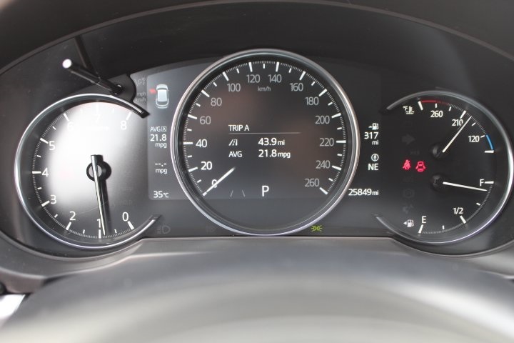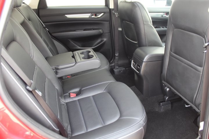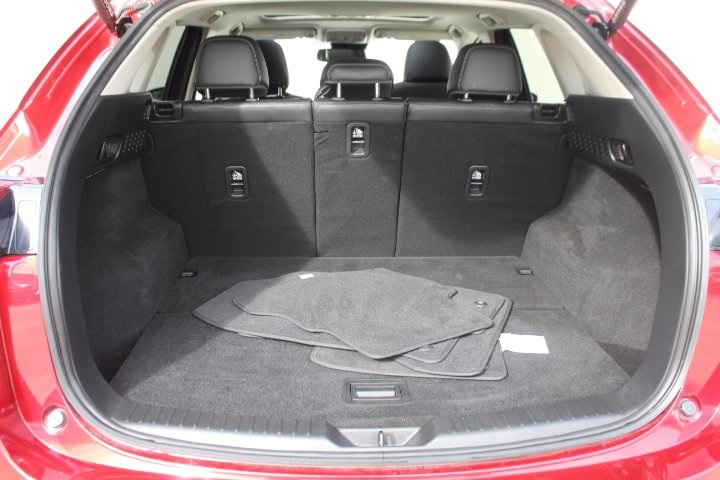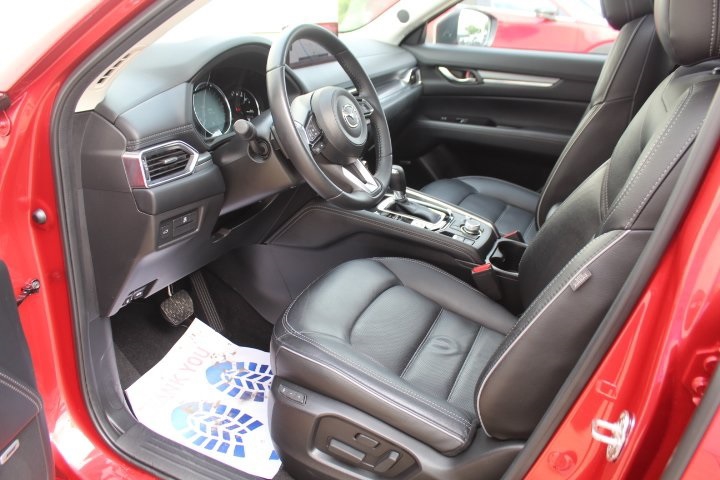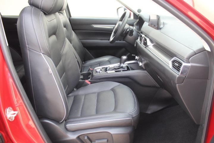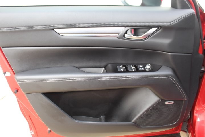 10 Speakers, 4-Wheel Disc Brakes, 4.624 Axle Ratio, ABS brakes, Air Conditioning, Alloy wheels, AM/FM radio: SiriusXM, AppLink/Apple CarPlay and Android Auto, Auto High-beam Headlights, Auto-dimming Rear-View mirror, Automatic temperature control, Brake assist, Bumpers: body-color, Delay-off headlights, Driver door bin, Driver vanity mirror, Dual front impact airbags, Dual front side impact airbags, E911 Automatic Emergency Notification, Electronic Stability Control, Emergency communication system: MAZDA CONNECT, Exterior Parking Camera Rear, Four wheel independent suspension, Front anti-roll bar, Front Bucket Seats, Front Center Armrest w/Storage, Front dual zone A/C, Front reading lights, Fully automatic headlights, Garage door transmitter: HomeLink, Heads-Up Display, Heated door mirrors, Heated front seats, Heated rear seats, Heated steering wheel, Heated/Ventilated Front Bucket Seats, Illuminated entry, Infotainment System Voice Command, Leather Seat Trim, Leather Shift Knob, Leather steering wheel, Low tire pressure warning, Memory seat, Multifunction Commander Control, Occupant sensing airbag, Outside temperature display, Overhead airbag, Overhead console, Pandora, Panic alarm, Passenger door bin, Passenger vanity mirror, Power door mirrors, Power driver seat, Power Liftgate, Power moonroof, Power passenger seat, Power steering, Power windows, Radio Broadcast Data System Program Information, Radio data system, Radio: AM/FM/HD Audio System, Rain sensing wipers, Rear anti-roll bar, Rear reading lights, Rear seat center armrest, Rear window defroster, Rear window wiper, Remote keyless entry, SMS Text Msg Audio Delivery & Reply, Soul Red Crystal Metallic Paint, Speed control, Speed-sensing steering, Split folding rear seat, Spoiler, Steering wheel mounted audio controls, Tachometer, Telescoping steering wheel, Tilt steering wheel, Traction control, Trip computer, Turn signal indicator mirrors, Variably intermittent wipers, Ventilated front seats, Wheels: 19" x 7J Aluminum Alloy.