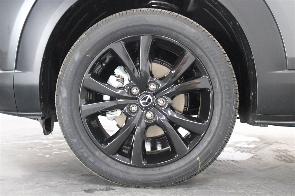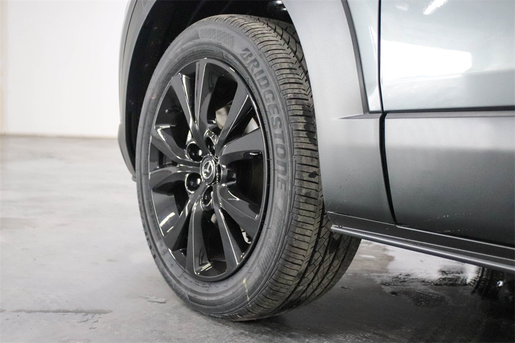 4-Wheel Disc Brakes, 6 Speakers, ABS brakes, Air Conditioning, Alloy wheels, AM/FM radio, AppLink/Apple CarPlay and Android Auto, Auto High-beam Headlights, Automatic temperature control, Brake assist, Bumpers: body-color, Compass, Delay-off headlights, Driver door bin, Driver vanity mirror, Dual front impact airbags, Dual front side impact airbags, Electronic Stability Control, Emergency communication system: Mazda Connected Services (3-year trial subscription included), Exterior Parking Camera Rear, Front anti-roll bar, Front Bucket Seats, Front Center Armrest, Front dual zone A/C, Front reading lights, Front wheel independent suspension, Fully automatic headlights, Heated door mirrors, Illuminated entry, Knee airbag, Leather Shift Knob, Leather steering wheel, Leatherette Seat Trim, Low tire pressure warning, Machine Gray Metallic Paint Charge, MAZDA CONNECT Infotainment System, Occupant sensing airbag, Outside temperature display, Overhead airbag, Overhead console, Panic alarm, Passenger door bin, Passenger vanity mirror, Power door mirrors, Power steering, Power windows, Radio data system, Radio: AM/FM Audio System, Rain sensing wipers, Rear seat center armrest, Rear side impact airbag, Rear window defroster, Rear window wiper, Remote keyless entry, Speed control, Speed-sensing steering, Split folding rear seat, Spoiler, Steering wheel mounted audio controls, Tachometer, Telescoping steering wheel, Tilt steering wheel, Traction control, Trip computer, Turn signal indicator mirrors, Variably intermittent wipers, Wheels: 18" x 7J Aluminum Alloy.