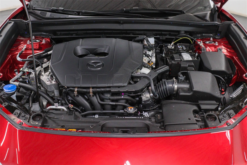 4-Wheel Disc Brakes, 6 Speakers, ABS brakes, Air Conditioning, Alloy wheels, AM/FM radio, AppLink/Apple CarPlay and Android Auto, Auto High-beam Headlights, Automatic temperature control, Brake assist, Bumpers: body-color, Compass, Delay-off headlights, Driver door bin, Driver vanity mirror, Dual front impact airbags, Dual front side impact airbags, Electronic Stability Control, Emergency communication system: Mazda Connected Services (3-year trial subscription included), Exterior Parking Camera Rear, Front anti-roll bar, Front Bucket Seats, Front Center Armrest, Front dual zone A/C, Front reading lights, Front wheel independent suspension, Fully automatic headlights, Heated door mirrors, Illuminated entry, Knee airbag, Leather Shift Knob, Leather steering wheel, Leatherette Seat Trim, Low tire pressure warning, MAZDA CONNECT Infotainment System, Occupant sensing airbag, Outside temperature display, Overhead airbag, Overhead console, Panic alarm, Passenger door bin, Passenger vanity mirror, Power door mirrors, Power steering, Power windows, Radio data system, Radio: AM/FM Audio System, Rain sensing wipers, Rear seat center armrest, Rear side impact airbag, Rear window defroster, Rear window wiper, Remote keyless entry, Soul Red Crystal Metallic Paint Charge, Speed control, Speed-sensing steering, Split folding rear seat, Spoiler, Steering wheel mounted audio controls, Tachometer, Telescoping steering wheel, Tilt steering wheel, Traction control, Trip computer, Turn signal indicator mirrors, Variably intermittent wipers, Wheels: 18" x 7J Aluminum Alloy.