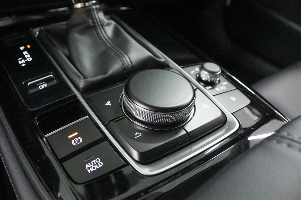 4-Wheel Disc Brakes, 6 Speakers, ABS brakes, Air Conditioning, Alloy wheels, AM/FM radio, AppLink/Apple CarPlay and Android Auto, Auto High-beam Headlights, Automatic temperature control, Brake assist, Bumpers: body-color, Compass, Delay-off headlights, Driver door bin, Driver vanity mirror, Dual front impact airbags, Dual front side impact airbags, Electronic Stability Control, Emergency communication system: Mazda Connected Services (3-year trial subscription included), Exterior Parking Camera Rear, Front anti-roll bar, Front Bucket Seats, Front Center Armrest, Front dual zone A/C, Front reading lights, Front wheel independent suspension, Fully automatic headlights, Heated door mirrors, Illuminated entry, Knee airbag, Leather Shift Knob, Leather steering wheel, Leatherette Seat Trim, Low tire pressure warning, MAZDA CONNECT Infotainment System, Occupant sensing airbag, Outside temperature display, Overhead airbag, Overhead console, Panic alarm, Passenger door bin, Passenger vanity mirror, Power door mirrors, Power steering, Power windows, Radio data system, Radio: AM/FM Audio System, Rain sensing wipers, Rear seat center armrest, Rear side impact airbag, Rear window defroster, Rear window wiper, Remote keyless entry, Speed control, Speed-sensing steering, Split folding rear seat, Spoiler, Steering wheel mounted audio controls, Tachometer, Telescoping steering wheel, Tilt steering wheel, Traction control, Trip computer, Turn signal indicator mirrors, Variably intermittent wipers, Wheels: 18" x 7J Aluminum Alloy.