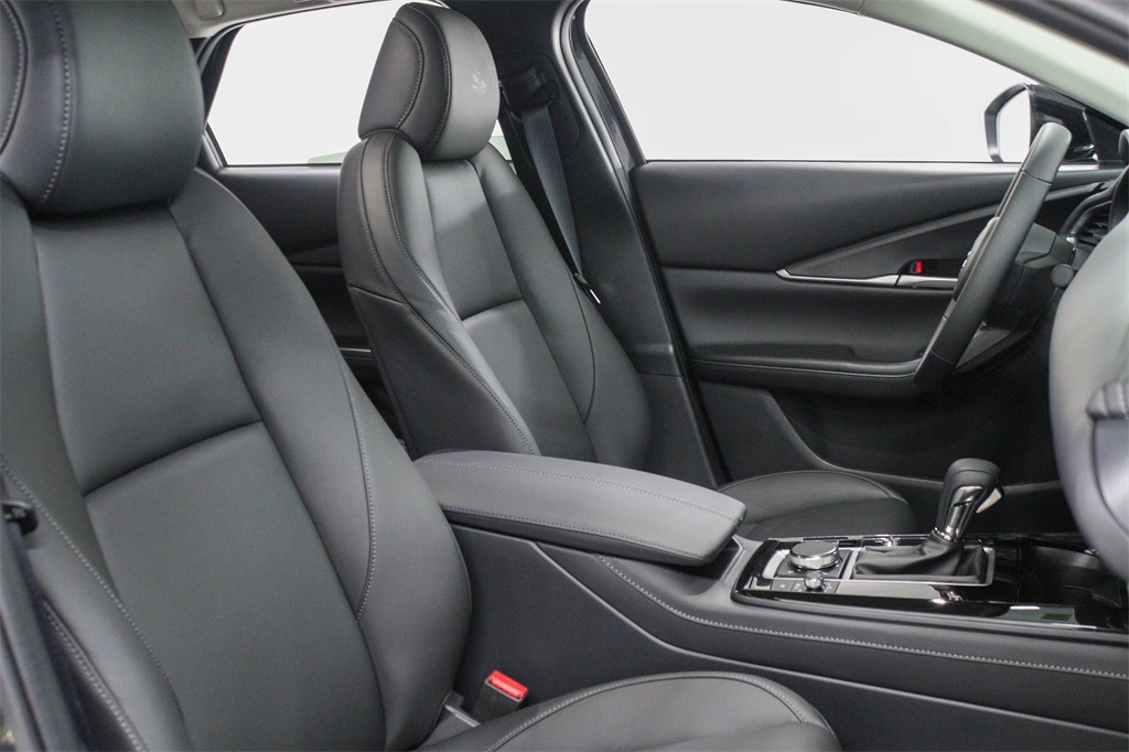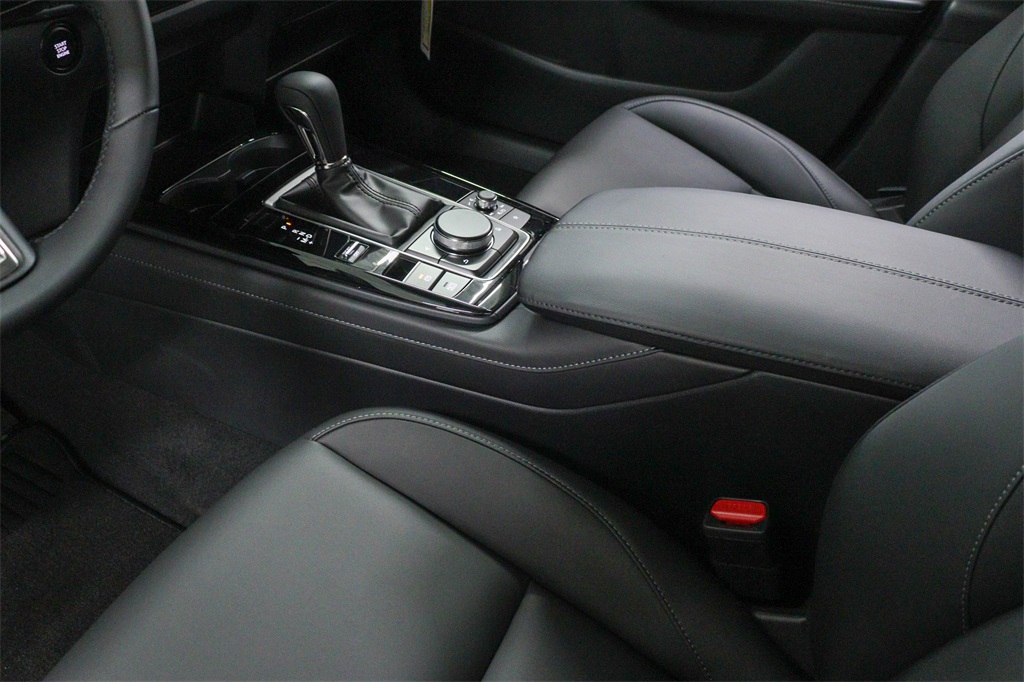 4-Wheel Disc Brakes, 6 Speakers, ABS brakes, Air Conditioning, Alloy wheels, AM/FM radio, AppLink/Apple CarPlay and Android Auto, Auto High-beam Headlights, Automatic temperature control, Brake assist, Bumpers: body-color, Compass, Delay-off headlights, Driver door bin, Driver vanity mirror, Dual front impact airbags, Dual front side impact airbags, Electronic Stability Control, Emergency communication system: Mazda Connected Services (3-year trial subscription included), Exterior Parking Camera Rear, Front anti-roll bar, Front Bucket Seats, Front Center Armrest, Front dual zone A/C, Front reading lights, Front wheel independent suspension, Fully automatic headlights, Heated door mirrors, Illuminated entry, Knee airbag, Leather Shift Knob, Leather steering wheel, Leatherette Seat Trim, Low tire pressure warning, MAZDA CONNECT Infotainment System, Occupant sensing airbag, Outside temperature display, Overhead airbag, Overhead console, Panic alarm, Passenger door bin, Passenger vanity mirror, Power door mirrors, Power steering, Power windows, Radio data system, Radio: AM/FM Audio System, Rain sensing wipers, Rear seat center armrest, Rear side impact airbag, Rear window defroster, Rear window wiper, Remote keyless entry, Speed control, Speed-sensing steering, Split folding rear seat, Spoiler, Steering wheel mounted audio controls, Tachometer, Telescoping steering wheel, Tilt steering wheel, Traction control, Trip computer, Turn signal indicator mirrors, Variably intermittent wipers, Wheels: 18" x 7J Aluminum Alloy.