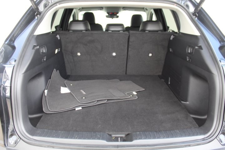 Mazda Certified Pre-Owned Certified, 4-Wheel Disc Brakes, 8 Speakers, ABS brakes, Air Conditioning, Alloy wheels, AM/FM radio, AppLink/Apple CarPlay and Android Auto, Auto High-beam Headlights, Automatic temperature control, Brake assist, Bumpers: body-color, Delay-off headlights, Driver door bin, Driver vanity mirror, Dual front impact airbags, Dual front side impact airbags, E911 Automatic Emergency Notification, Electronic Stability Control, Emergency communication system: MAZDA CONNECT, Exterior Parking Camera Rear, Front anti-roll bar, Front Bucket Seats, Front Center Armrest, Front dual zone A/C, Front reading lights, Front wheel independent suspension, Fully automatic headlights, Half Leatherette Seat Trim, Heated door mirrors, Heated Front Bucket Seats, Heated front seats, Illuminated entry, Infotainment System Voice Command, Knee airbag, Leather Shift Knob, Leather steering wheel, Low tire pressure warning, Multifunction Commander Control, Occupant sensing airbag, Outside temperature display, Overhead airbag, Overhead console, Panic alarm, Passenger door bin, Passenger vanity mirror, Power door mirrors, Power driver seat, Power Liftgate, Power steering, Power windows, Radio Broadcast Data System Program Information, Radio data system, Radio: AM/FM/HD Audio System, Rain sensing wipers, Rear seat center armrest, Rear window defroster, Rear window wiper, Remote keyless entry, SMS Text Msg Audio Delivery & Reply, Speed control, Speed-sensing steering, Split folding rear seat, Spoiler, Steering wheel mounted audio controls, Tachometer, Telescoping steering wheel, Tilt steering wheel, Traction control, Trip computer, Turn signal indicator mirrors, Variably intermittent wipers, Wheels: 17" x 7J Aluminum Alloy.