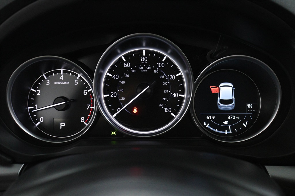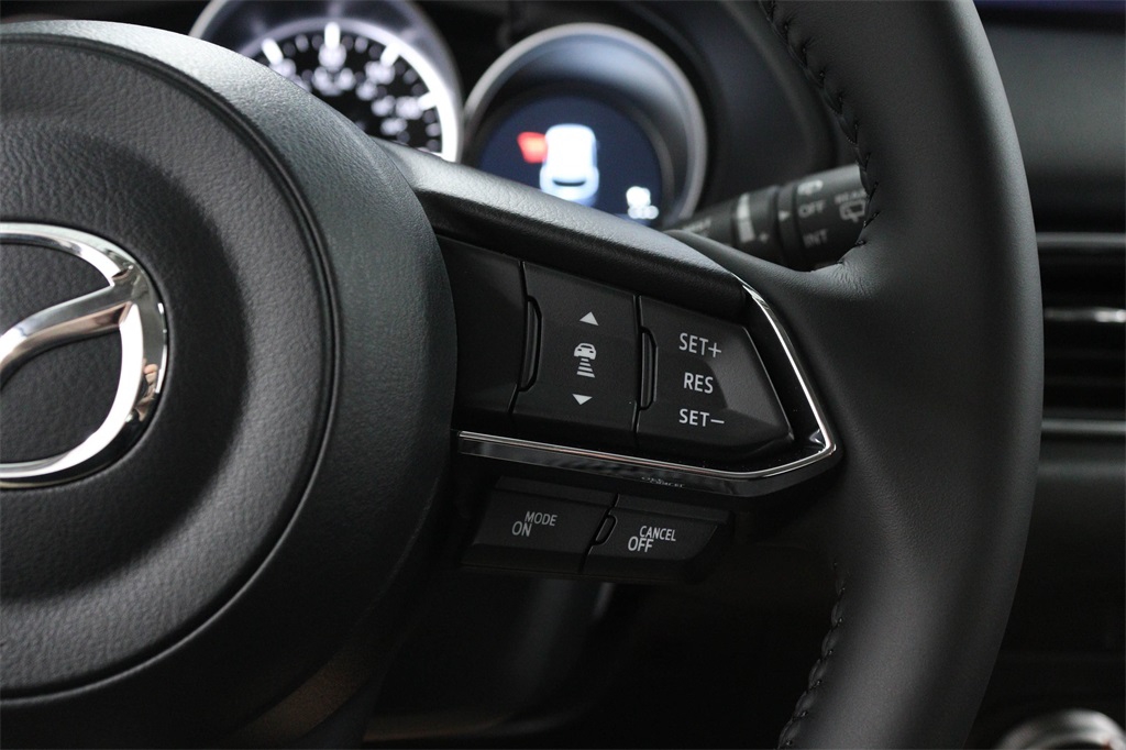 4 Speakers, 4-Wheel Disc Brakes, ABS brakes, Air Conditioning, Alloy wheels, AM/FM radio, AppLink/Apple CarPlay and Android Auto, Auto High-beam Headlights, Brake assist, Bumpers: body-color, Cloth Seat Trim, Delay-off headlights, Driver door bin, Driver vanity mirror, Dual front impact airbags, Dual front side impact airbags, E911 Automatic Emergency Notification, Electronic Stability Control, Emergency communication system: MAZDA CONNECT, Exterior Parking Camera Rear, Four wheel independent suspension, Front anti-roll bar, Front Bucket Seats, Front Center Armrest w/Storage, Front reading lights, Fully automatic headlights, Illuminated entry, Infotainment System Voice Command, Leather Shift Knob, Leather steering wheel, Low tire pressure warning, Multifunction Commander Control, Occupant sensing airbag, Outside temperature display, Overhead airbag, Overhead console, Pandora, Panic alarm, Passenger door bin, Passenger vanity mirror, Power door mirrors, Power steering, Power windows, Radio Broadcast Data System Program Information, Radio data system, Radio: AM/FM/HD Audio System, Rain sensing wipers, Rear anti-roll bar, Rear reading lights, Rear window defroster, Rear window wiper, Remote keyless entry, Rhodium White Metallic Paint, SMS Text Msg Audio Delivery & Reply, Speed control, Speed-sensing steering, Split folding rear seat, Spoiler, Steering wheel mounted audio controls, Tachometer, Telescoping steering wheel, Tilt steering wheel, Traction control, Trip computer, Turn signal indicator mirrors, Variably intermittent wipers, Wheels: 17" x 7J Aluminum Alloy.