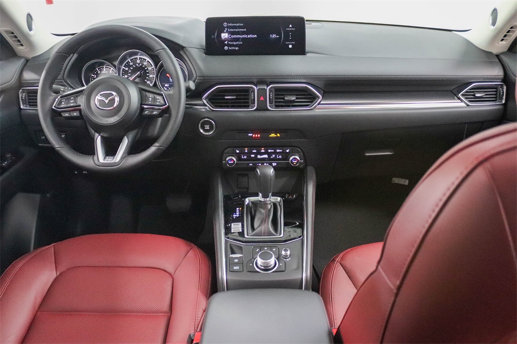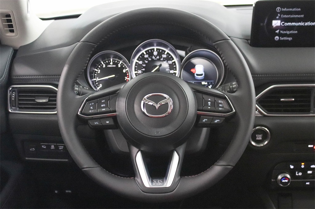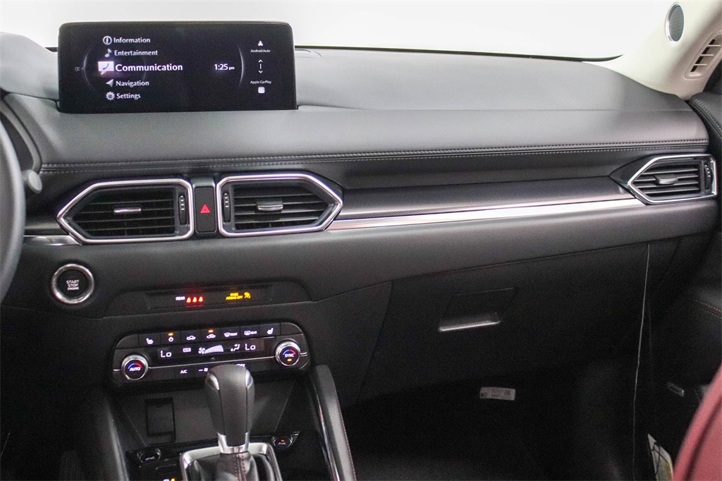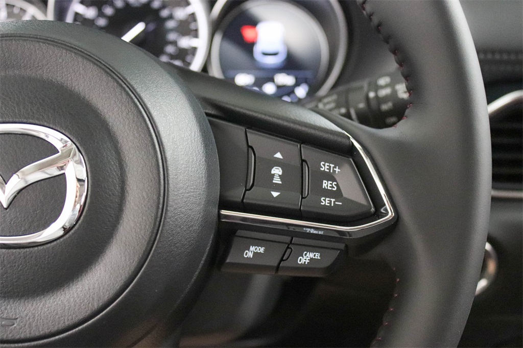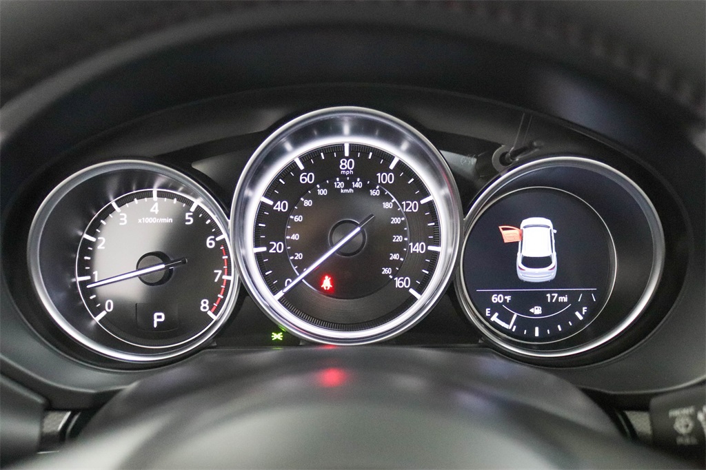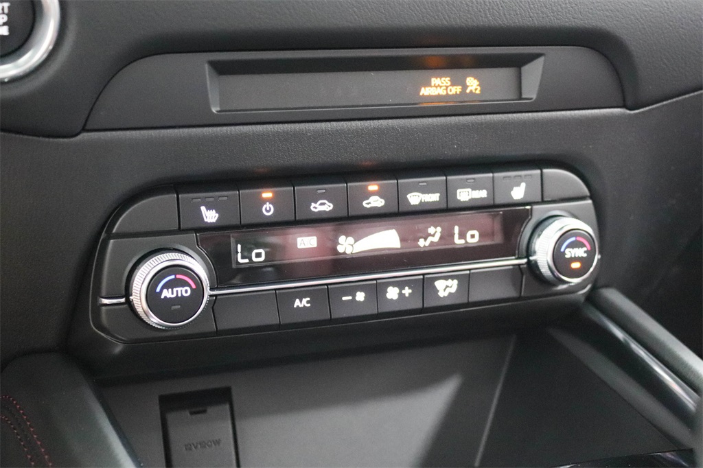 10 Speakers, 4-Wheel Disc Brakes, ABS brakes, Air Conditioning, Alloy wheels, AM/FM radio, AppLink/Apple CarPlay and Android Auto, Auto High-beam Headlights, Auto-dimming Rear-View mirror, Automatic temperature control, Black Lug Nuts & Black Wheel Locks, Brake assist, Bumpers: body-color, Delay-off headlights, Driver door bin, Driver vanity mirror, Dual front impact airbags, Dual front side impact airbags, E911 Automatic Emergency Notification, Electronic Stability Control, Emergency communication system: MAZDA CONNECT, Exterior Parking Camera Rear, Four wheel independent suspension, Front anti-roll bar, Front Bucket Seats, Front Center Armrest w/Storage, Front dual zone A/C, Front reading lights, Fully automatic headlights, Garage door transmitter: HomeLink, Heated Front Bucket Seats, Heated front seats, Illuminated entry, Infotainment System Voice Command, Leather Seat Trim, Leather Shift Knob, Leather steering wheel, Low tire pressure warning, Memory seat, Multifunction Commander Control, Occupant sensing airbag, Outside temperature display, Overhead airbag, Overhead console, Pandora, Panic alarm, Passenger door bin, Passenger vanity mirror, Power door mirrors, Power driver seat, Power Liftgate, Power moonroof, Power passenger seat, Power steering, Power windows, Radio Broadcast Data System Program Information, Radio data system, Radio: AM/FM/HD Audio System, Rain sensing wipers, Rear anti-roll bar, Rear reading lights, Rear seat center armrest, Rear window defroster, Rear window wiper, Remote keyless entry, SMS Text Msg Audio Delivery & Reply, Speed control, Speed-sensing steering, Split folding rear seat, Spoiler, Steering wheel mounted audio controls, Tachometer, Telescoping steering wheel, Tilt steering wheel, Traction control, Trip computer, Turn signal indicator mirrors, Variably intermittent wipers, Wheels: 19" x 7J Aluminum Alloy.