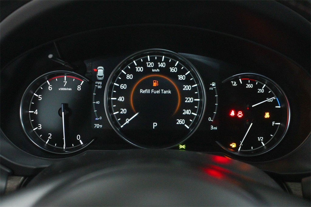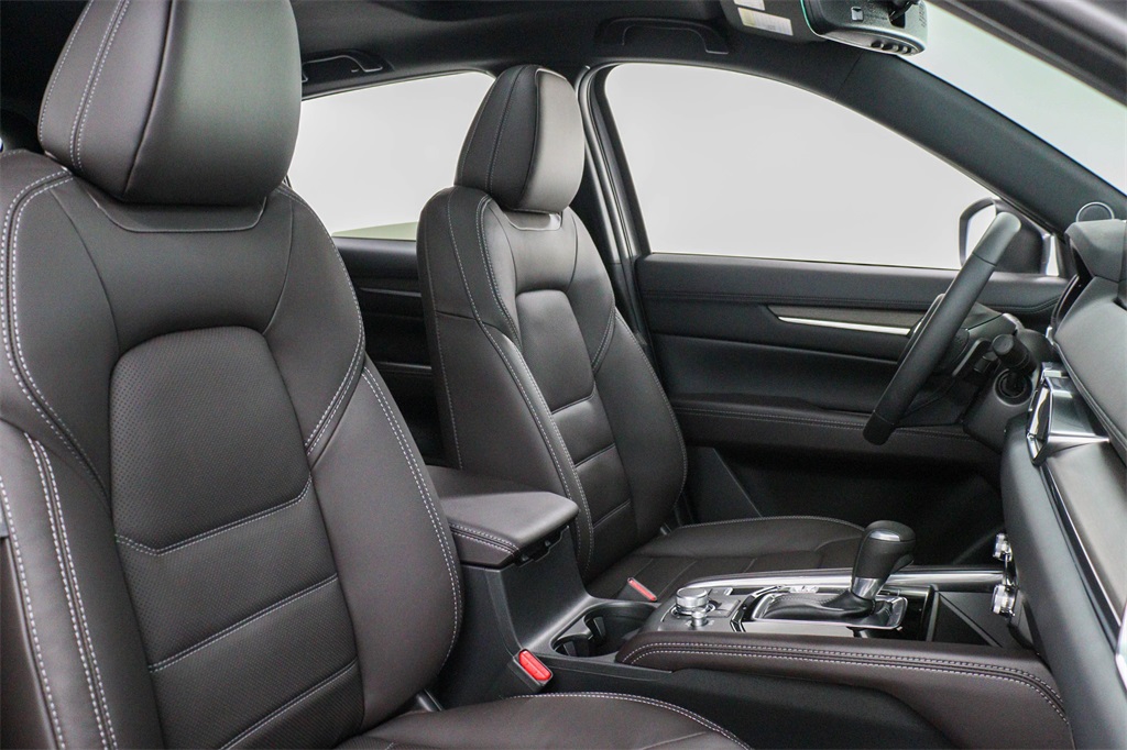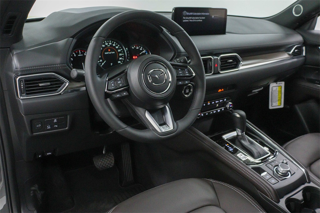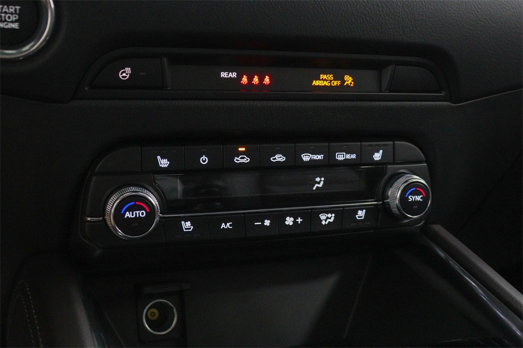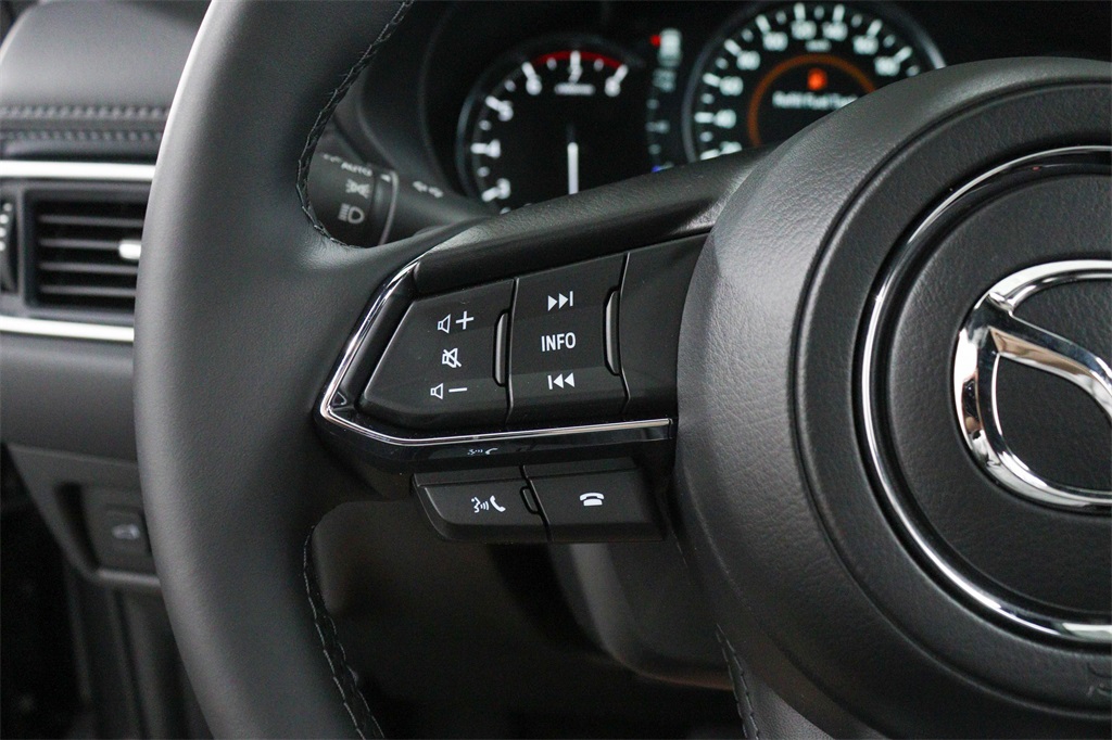 10 Speakers, 4-Wheel Disc Brakes, ABS brakes, Air Conditioning, Alloy wheels, AM/FM radio: SiriusXM, AppLink/Apple CarPlay and Android Auto, Auto High-beam Headlights, Auto-dimming Rear-View mirror, Automatic temperature control, Brake assist, Bumpers: body-color, Delay-off headlights, Driver door bin, Driver vanity mirror, Dual front impact airbags, Dual front side impact airbags, E911 Automatic Emergency Notification, Electronic Stability Control, Emergency communication system: MAZDA CONNECT, Four wheel independent suspension, Front anti-roll bar, Front Bucket Seats, Front Center Armrest w/Storage, Front dual zone A/C, Front reading lights, Fully automatic headlights, Garage door transmitter: HomeLink, Genuine wood dashboard insert, Genuine wood door panel insert, Heads-Up Display, Heated door mirrors, Heated front seats, Heated rear seats, Heated steering wheel, Heated/Ventilated Front Bucket Seats, Illuminated entry, Infotainment System Voice Command, Leather Shift Knob, Leather steering wheel, Low tire pressure warning, Machine Gray Metallic Paint, Mazda Navigation System, Memory seat, Multifunction Commander Control, Nappa Leather Seat Trim, Navigation system: MAZDA CONNECT, Occupant sensing airbag, Outside temperature display, Overhead airbag, Overhead console, Pandora, Panic alarm, Passenger door bin, Passenger vanity mirror, Power door mirrors, Power driver seat, Power Liftgate, Power moonroof, Power passenger seat, Power steering, Power windows, Radio Broadcast Data System Program Information, Radio data system, Radio: AM/FM/HD Audio System, Rain sensing wipers, Rear anti-roll bar, Rear Bumper Guard, Rear reading lights, Rear seat center armrest, Rear window defroster, Rear window wiper, Remote keyless entry, SMS Text Msg Audio Delivery & Reply, Speed control, Speed-sensing steering, Split folding rear seat, Spoiler, Steering wheel mounted audio controls, Tachometer, Telescoping steering wheel, Tilt steering wheel, Traction control, Trip computer, Turn signal indicator mirrors, Variably intermittent wipers, Ventilated front seats, Wheels: 19" x 7J Aluminum Alloy.