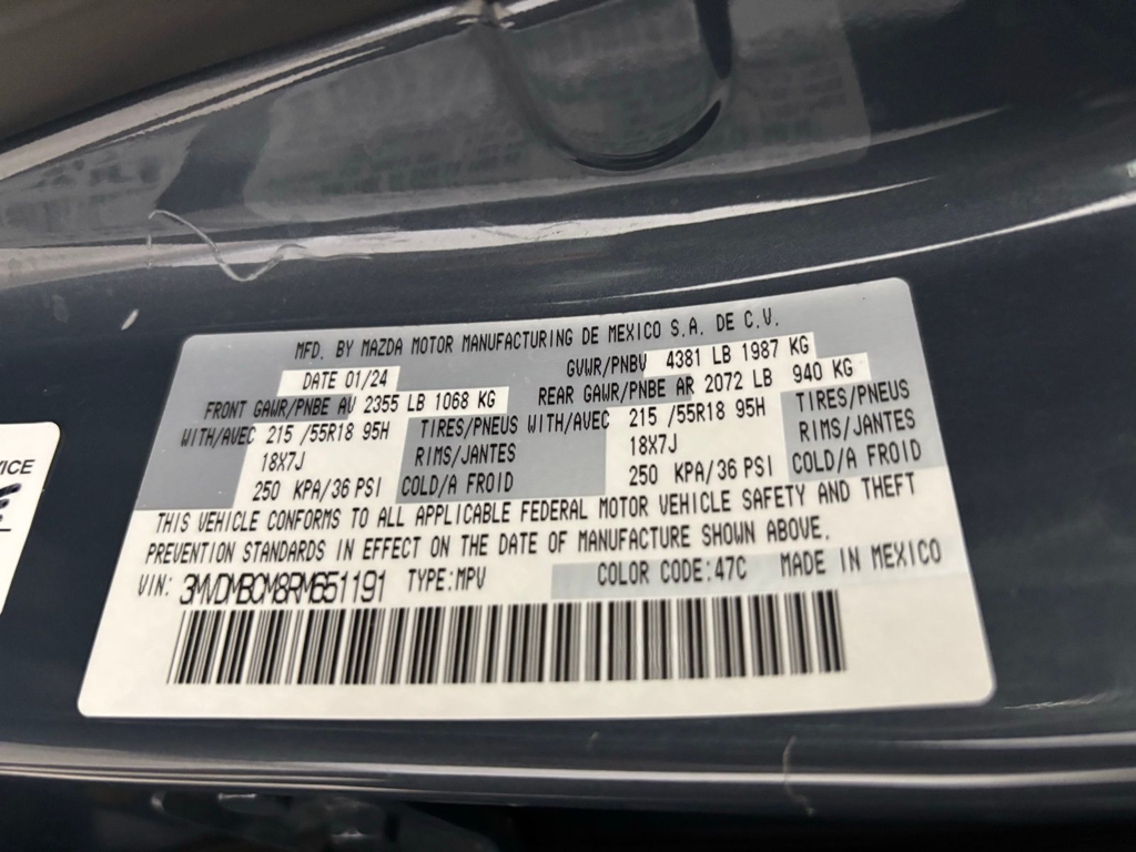 Mazda Certified Pre-Owned Certified, 4-Wheel Disc Brakes, 4.095 Axle Ratio, 8 Speakers, ABS brakes, Air Conditioning, Alloy wheels, AM/FM radio, AppLink/Apple CarPlay and Android Auto, Auto High-beam Headlights, Automatic temperature control, Brake assist, Bumpers: body-color, Compass, Delay-off headlights, Driver door bin, Driver vanity mirror, Dual front impact airbags, Dual front side impact airbags, Electronic Stability Control, Emergency communication system: Mazda Connected Services (3-year complimentary trial included), Exterior Parking Camera Rear, Front anti-roll bar, Front Bucket Seats, Front Center Armrest, Front dual zone A/C, Front reading lights, Front wheel independent suspension, Fully automatic headlights, Heated door mirrors, Heated Front Bucket Seats, Heated front seats, Illuminated entry, Knee airbag, Leather Seat Trim, Leather Shift Knob, Leather steering wheel, Low tire pressure warning, MAZDA CONNECT Infotainment System, Memory seat, Occupant sensing airbag, Outside temperature display, Overhead airbag, Overhead console, Panic alarm, Passenger door bin, Passenger vanity mirror, Power door mirrors, Power driver seat, Power moonroof, Power steering, Power windows, Radio data system, Radio: AM/FM/HD Audio System, Rain sensing wipers, Rear seat center armrest, Rear side impact airbag, Rear window defroster, Rear window wiper, Remote keyless entry, Speed control, Speed-sensing steering, Split folding rear seat, Spoiler, Steering wheel mounted audio controls, Tachometer, Telescoping steering wheel, Tilt steering wheel, Traction control, Trip computer, Turn signal indicator mirrors, Variably intermittent wipers, Wheels: 18" x 7J Aluminum Alloy.