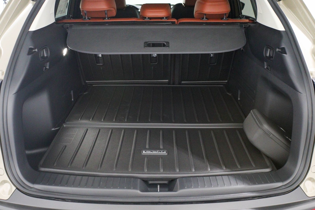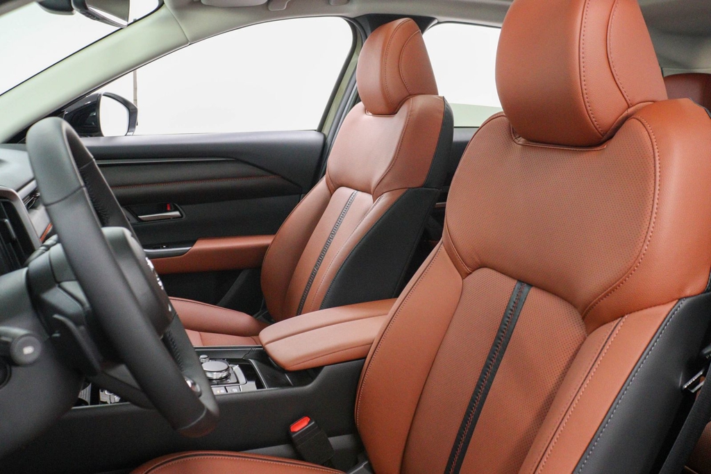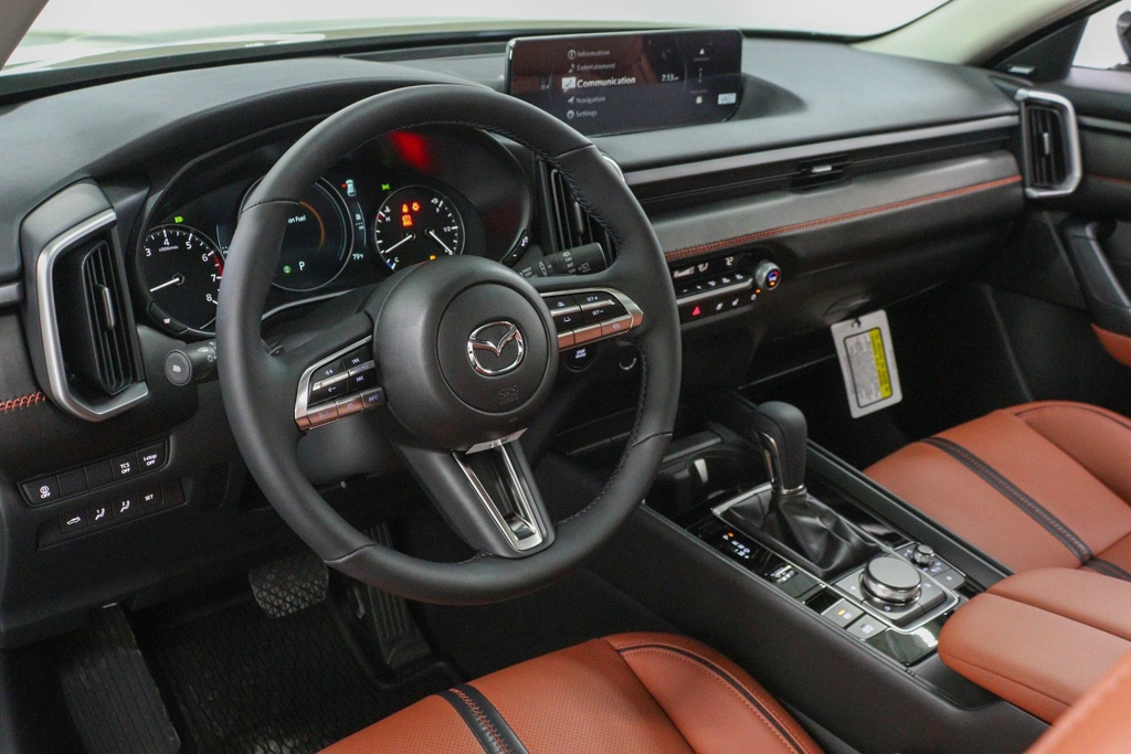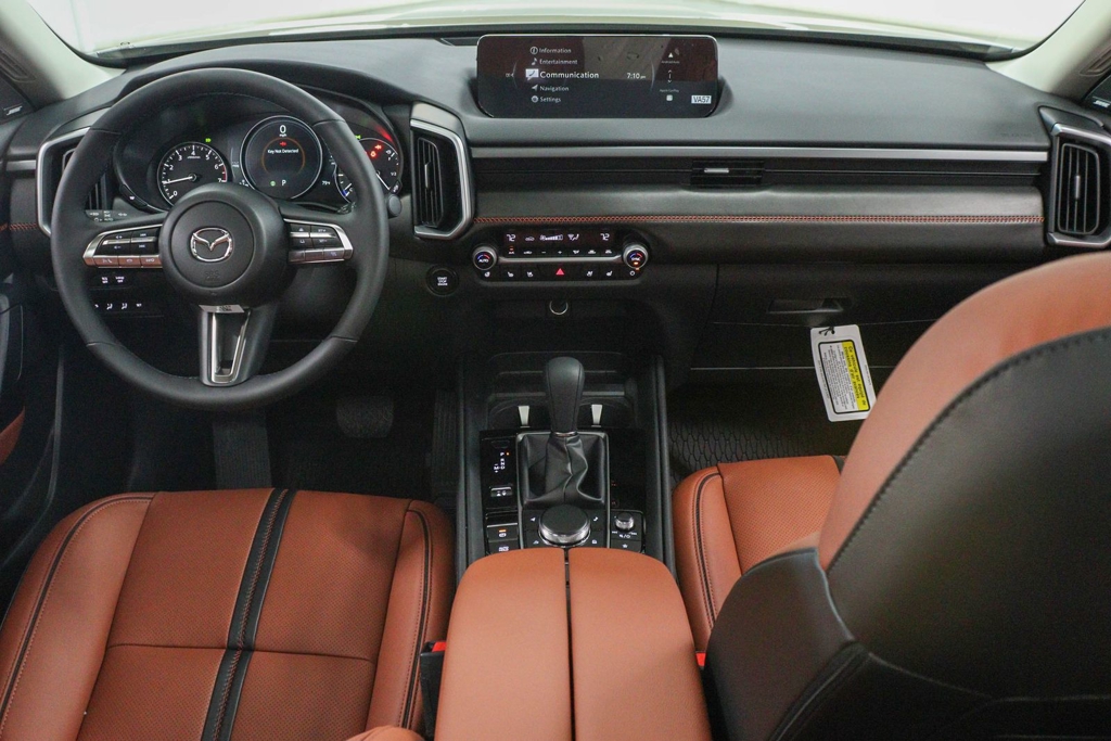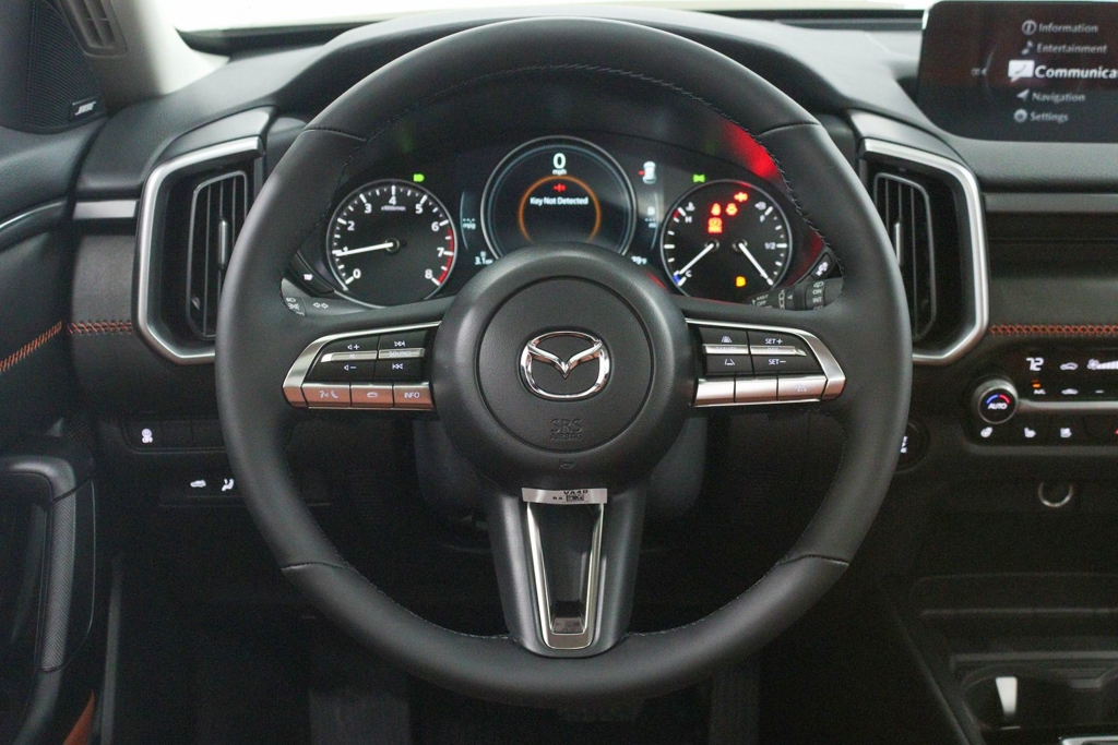 12 Speakers, 4-Wheel Disc Brakes, ABS brakes, Air Conditioning, Alloy wheels, AM/FM radio: SiriusXM, AppLink/Apple CarPlay and Android Auto, Auto High-beam Headlights, Auto-dimming Rear-View mirror, Automatic temperature control, Brake assist, Bumpers: body-color, Cargo Liner w/Seatback Protection, Compass, Delay-off headlights, Driver door bin, Driver vanity mirror, Dual front impact airbags, Dual front side impact airbags, E911 Automatic Emergency Notification, Electronic Stability Control, Emergency communication system: MAZDA CONNECT, Exterior Parking Camera Rear, Front anti-roll bar, Front Bucket Seats, Front Center Armrest, Front dual zone A/C, Front reading lights, Front wheel independent suspension, Fully automatic headlights, Garage door transmitter: HomeLink, Heated & Ventilated Front Bucket Seats, Heated door mirrors, Heated front seats, Heated rear seats, Heated steering wheel, Illuminated entry, Infotainment System Voice Command, Knee airbag, Leather Seat Trim, Leather Shift Knob, Leather steering wheel, Low tire pressure warning, Memory seat, Multifunction Commander Control, Navigation system: MAZDA CONNECT, Occupant sensing airbag, Outside temperature display, Overhead airbag, Overhead console, Panic alarm, Passenger door bin, Passenger vanity mirror, Power door mirrors, Power driver seat, Power Liftgate, Power moonroof, Power passenger seat, Power steering, Power windows, Radio Broadcast Data System Program Information, Radio data system, Radio: AM/FM/HD Audio System, Rain sensing wipers, Rear seat center armrest, Rear window defroster, Rear window wiper, Remote keyless entry, Retractable Cargo Cover, SMS Text Msg Audio Delivery & Reply, Speed control, Speed-sensing steering, Split folding rear seat, Spoiler, Steering wheel mounted audio controls, Tachometer, Telescoping steering wheel, Tilt steering wheel, Traction control, Trip computer, Turn signal indicator mirrors, Variably intermittent wipers, Ventilated front seats, Weather Package, Wheels: 18" x 8J Aluminum Alloy, Zircon Sand Metallic Paint Charge.