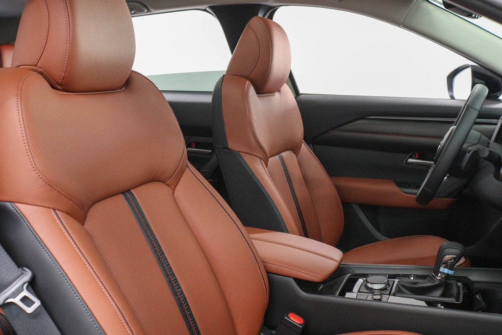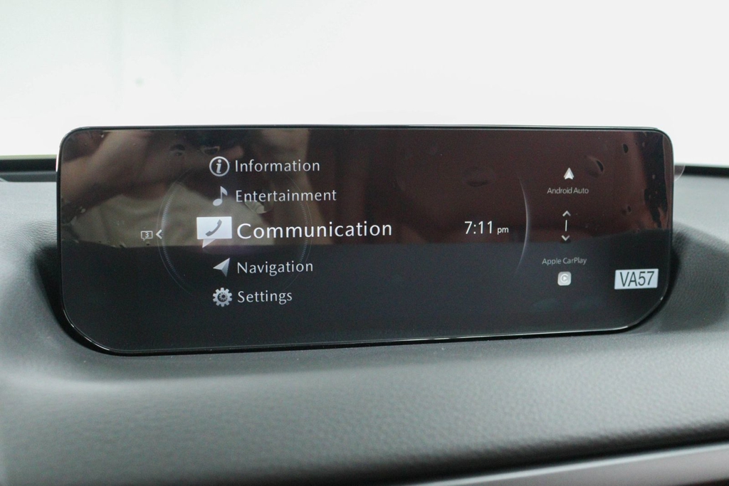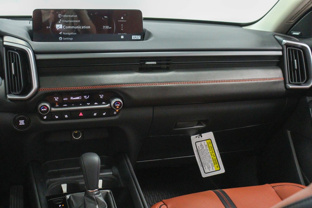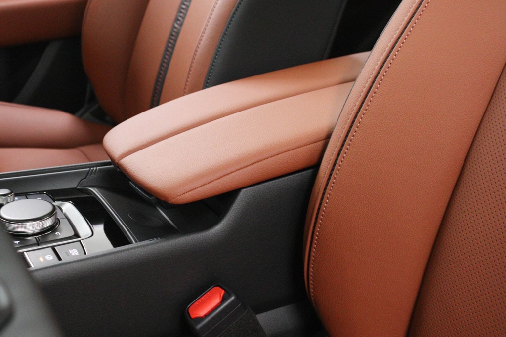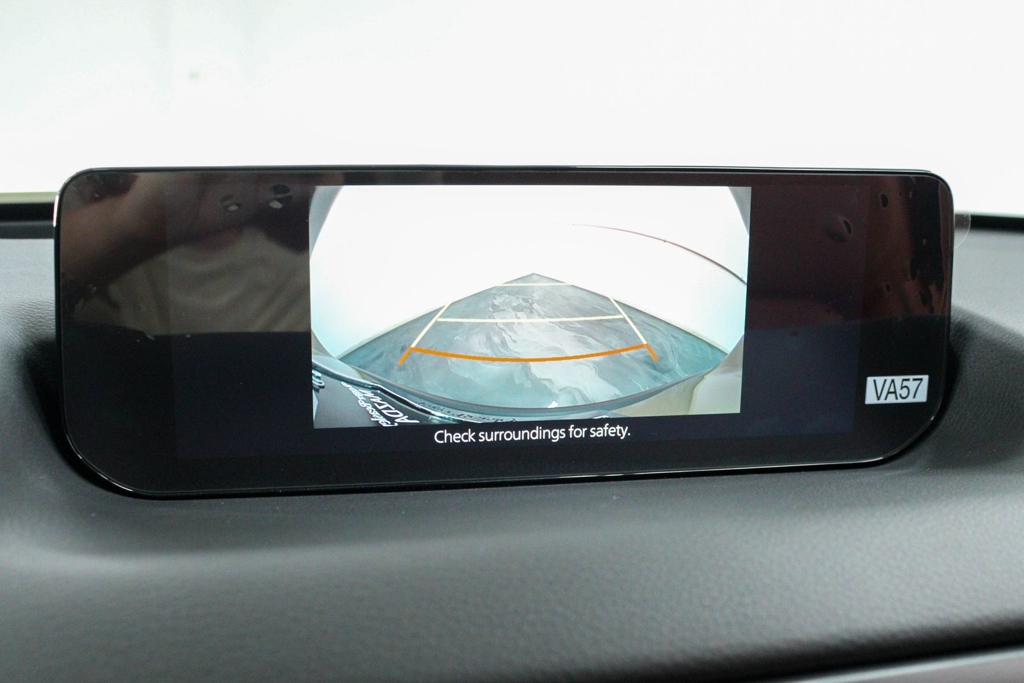 12 Speakers, 4-Wheel Disc Brakes, ABS brakes, Air Conditioning, Alloy wheels, AM/FM radio: SiriusXM, AppLink/Apple CarPlay and Android Auto, Auto High-beam Headlights, Auto-dimming Rear-View mirror, Automatic temperature control, Brake assist, Bumpers: body-color, Cargo Liner w/Seatback Protection, Compass, Delay-off headlights, Driver door bin, Driver vanity mirror, Dual front impact airbags, Dual front side impact airbags, E911 Automatic Emergency Notification, Electronic Stability Control, Emergency communication system: MAZDA CONNECT, Exterior Parking Camera Rear, Front anti-roll bar, Front Bucket Seats, Front Center Armrest, Front dual zone A/C, Front reading lights, Front wheel independent suspension, Fully automatic headlights, Garage door transmitter: HomeLink, Heated & Ventilated Front Bucket Seats, Heated door mirrors, Heated front seats, Heated rear seats, Heated steering wheel, Illuminated entry, Infotainment System Voice Command, Knee airbag, Leather Seat Trim, Leather Shift Knob, Leather steering wheel, Low tire pressure warning, Memory seat, Multifunction Commander Control, Navigation system: MAZDA CONNECT, Occupant sensing airbag, Outside temperature display, Overhead airbag, Overhead console, Panic alarm, Passenger door bin, Passenger vanity mirror, Power door mirrors, Power driver seat, Power Liftgate, Power moonroof, Power passenger seat, Power steering, Power windows, Radio Broadcast Data System Program Information, Radio data system, Radio: AM/FM/HD Audio System, Rain sensing wipers, Rear seat center armrest, Rear window defroster, Rear window wiper, Remote keyless entry, Retractable Cargo Cover, SMS Text Msg Audio Delivery & Reply, Speed control, Speed-sensing steering, Split folding rear seat, Spoiler, Steering wheel mounted audio controls, Tachometer, Telescoping steering wheel, Tilt steering wheel, Traction control, Trip computer, Turn signal indicator mirrors, Variably intermittent wipers, Ventilated front seats, Weather Package, Wheels: 18" x 8J Aluminum Alloy, Zircon Sand Metallic Paint Charge.