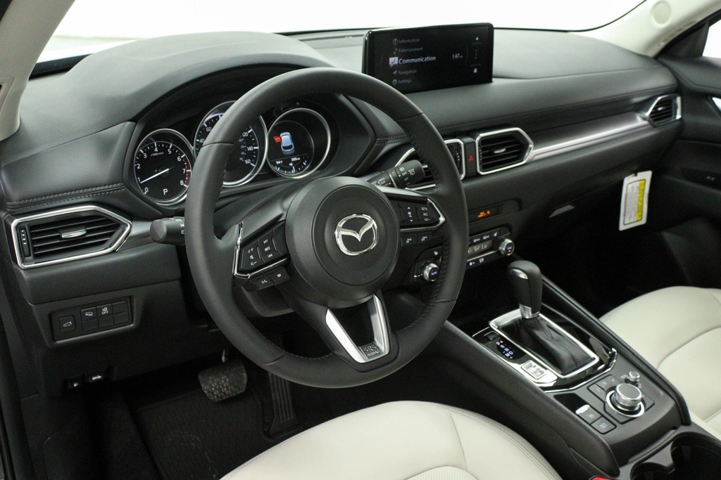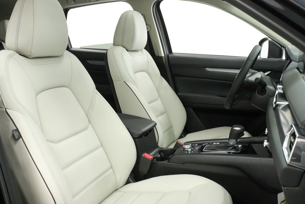 4-Wheel Disc Brakes, 6 Speakers, ABS brakes, Air Conditioning, All-Weather Floor Mats, Alloy wheels, AM/FM radio, AppLink/Apple CarPlay and Android Auto, Auto High-beam Headlights, Auto-dimming Rear-View mirror, Automatic temperature control, Brake assist, Bumpers: body-color, Cargo Tray, Delay-off headlights, Driver door bin, Driver vanity mirror, Dual front impact airbags, Dual front side impact airbags, E911 Automatic Emergency Notification, Electronic Stability Control, Emergency communication system: MAZDA CONNECT, Exterior Parking Camera Rear, First Aid Kit, Four wheel independent suspension, Front anti-roll bar, Front Bucket Seats, Front Center Armrest w/Storage, Front dual zone A/C, Front reading lights, Fully automatic headlights, Garage door transmitter: HomeLink, Heated Front Bucket Seats, Heated front seats, Illuminated entry, Infotainment System Voice Command, Leather Seat Trim, Leather Shift Knob, Leather steering wheel, Low tire pressure warning, Memory seat, Multifunction Commander Control, Occupant sensing airbag, Outside temperature display, Overhead airbag, Overhead console, Pandora, Panic alarm, Passenger door bin, Passenger vanity mirror, Power door mirrors, Power driver seat, Power Liftgate, Power moonroof, Power passenger seat, Power steering, Power windows, Radio Broadcast Data System Program Information, Radio data system, Radio: AM/FM/HD Audio System, Rain sensing wipers, Rear anti-roll bar, Rear reading lights, Rear seat center armrest, Rear window defroster, Rear window wiper, Remote keyless entry, Retractable Cargo Cover, SMS Text Msg Audio Delivery & Reply, Speed control, Speed-sensing steering, Split folding rear seat, Spoiler, Steering wheel mounted audio controls, Tachometer, Telescoping steering wheel, Tilt steering wheel, Traction control, Trip computer, Turn signal indicator mirrors, Variably intermittent wipers, Wheels: 17" x 7J Aluminum Alloy.