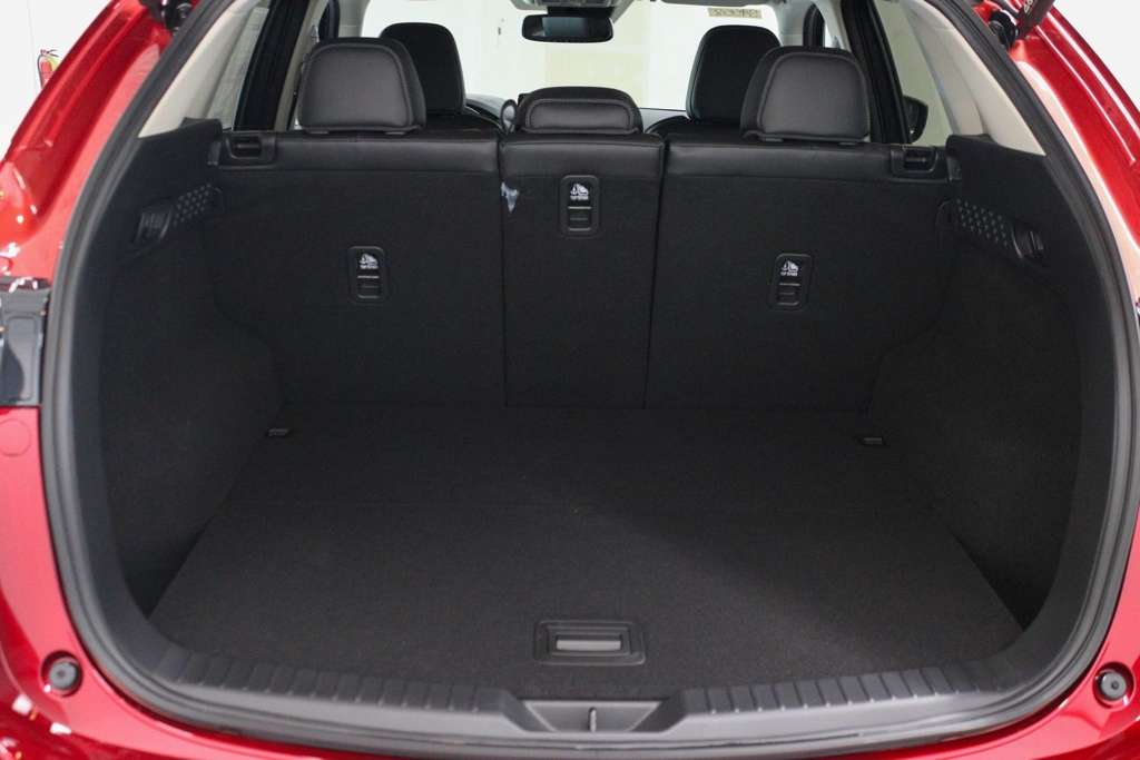 4-Wheel Disc Brakes, 6 Speakers, ABS brakes, Air Conditioning, All-Weather Floor Mats, Alloy wheels, AM/FM radio, AppLink/Apple CarPlay and Android Auto, Auto High-beam Headlights, Auto-dimming Rear-View mirror, Automatic temperature control, Brake assist, Bumpers: body-color, Cargo Tray, Delay-off headlights, Driver door bin, Driver vanity mirror, Dual front impact airbags, Dual front side impact airbags, E911 Automatic Emergency Notification, Electronic Stability Control, Emergency communication system: MAZDA CONNECT, Exterior Parking Camera Rear, First Aid Kit, Four wheel independent suspension, Front anti-roll bar, Front Bucket Seats, Front Center Armrest w/Storage, Front dual zone A/C, Front reading lights, Fully automatic headlights, Garage door transmitter: HomeLink, Heated Front Bucket Seats, Heated front seats, Illuminated entry, Infotainment System Voice Command, Leather Seat Trim, Leather Shift Knob, Leather steering wheel, Low tire pressure warning, Memory seat, Multifunction Commander Control, Occupant sensing airbag, Outside temperature display, Overhead airbag, Overhead console, Pandora, Panic alarm, Passenger door bin, Passenger vanity mirror, Power door mirrors, Power driver seat, Power Liftgate, Power moonroof, Power passenger seat, Power steering, Power windows, Radio Broadcast Data System Program Information, Radio data system, Radio: AM/FM/HD Audio System, Rain sensing wipers, Rear anti-roll bar, Rear reading lights, Rear seat center armrest, Rear window defroster, Rear window wiper, Remote keyless entry, SMS Text Msg Audio Delivery & Reply, Soul Red Crystal Metallic Paint, Speed control, Speed-sensing steering, Split folding rear seat, Spoiler, Steering wheel mounted audio controls, Tachometer, Telescoping steering wheel, Tilt steering wheel, Traction control, Trip computer, Turn signal indicator mirrors, Variably intermittent wipers, Wheels: 17" x 7J Aluminum Alloy.