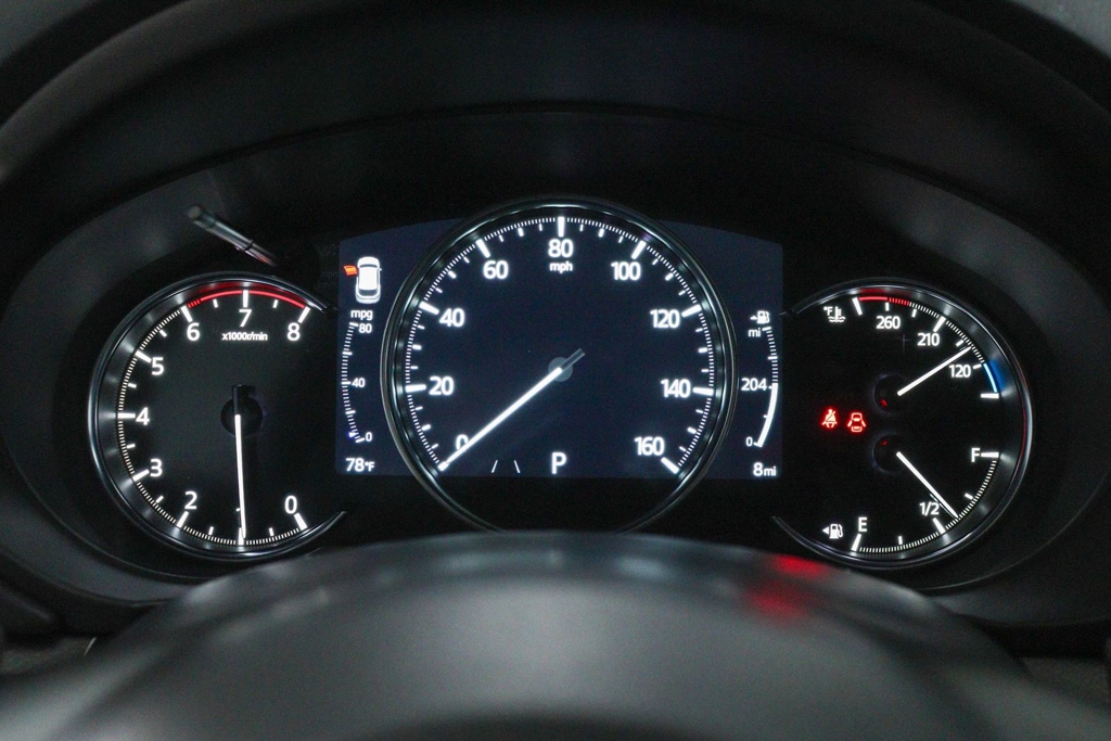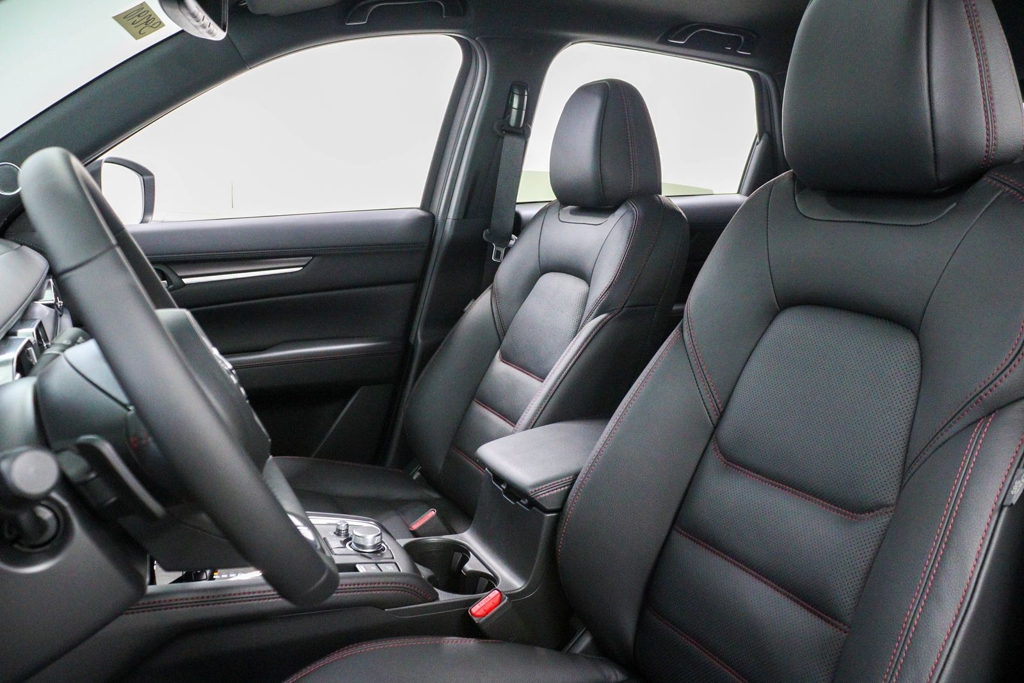 10 Speakers, 4-Wheel Disc Brakes, ABS brakes, Air Conditioning, Alloy wheels, AM/FM radio: SiriusXM, AppLink/Apple CarPlay and Android Auto, Auto High-beam Headlights, Auto-dimming Rear-View mirror, Automatic temperature control, Black Lug Nuts & Black Wheel Locks, Brake assist, Bumpers: body-color, Delay-off headlights, Driver door bin, Driver vanity mirror, Dual front impact airbags, Dual front side impact airbags, E911 Automatic Emergency Notification, Electronic Stability Control, Emergency communication system: MAZDA CONNECT, Four wheel independent suspension, Front anti-roll bar, Front Bucket Seats, Front Center Armrest w/Storage, Front dual zone A/C, Front reading lights, Fully automatic headlights, Garage door transmitter: HomeLink, Heads-Up Display, Heated door mirrors, Heated front seats, Heated rear seats, Heated steering wheel, Heated/Ventilated Front Bucket Seats, Illuminated entry, Infotainment System Voice Command, Leather Seat Trim, Leather Shift Knob, Leather steering wheel, Low tire pressure warning, Memory seat, Multifunction Commander Control, Occupant sensing airbag, Outside temperature display, Overhead airbag, Overhead console, Pandora, Panic alarm, Passenger door bin, Passenger vanity mirror, Power door mirrors, Power driver seat, Power Liftgate, Power moonroof, Power passenger seat, Power steering, Power windows, Radio Broadcast Data System Program Information, Radio data system, Radio: AM/FM/HD Audio System, Rain sensing wipers, Rear anti-roll bar, Rear reading lights, Rear seat center armrest, Rear window defroster, Rear window wiper, Remote keyless entry, Rhodium White Metallic Paint, SMS Text Msg Audio Delivery & Reply, Speed control, Speed-sensing steering, Split folding rear seat, Spoiler, Steering wheel mounted audio controls, Tachometer, Telescoping steering wheel, Tilt steering wheel, Traction control, Trip computer, Turn signal indicator mirrors, Variably intermittent wipers, Ventilated front seats, Wheels: 19" x 7J Aluminum Alloy.