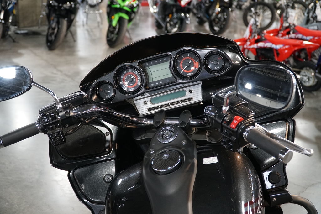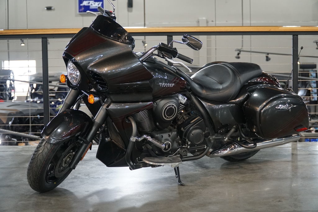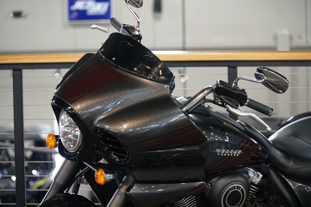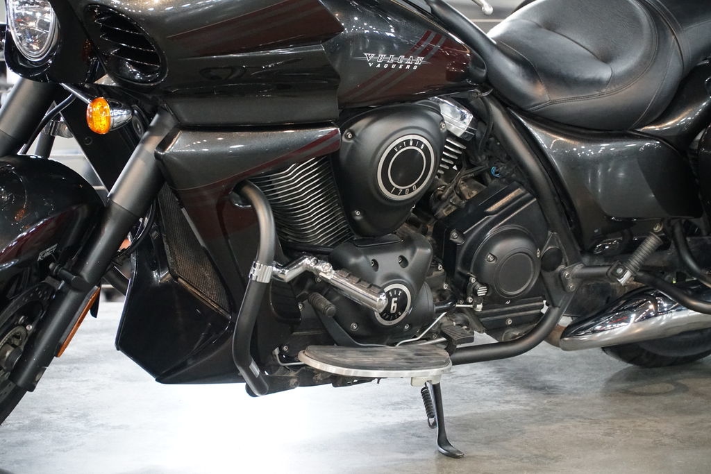 It may look like a custom V-twin bagger, but the Vulcan® 1700 Vaquero® ABS cruiser is in a class of its own. A roaring 1,700cc engine featuring advanced Kawasaki technology offers a smooth, reassuring ride. The blacked-out engine, distinct bodywork styling and select chrome accents create a unique and bold appearance.