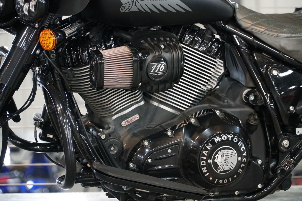 Off the line, every Chief Dark Horse comes with keyless ignition, USB charging port, cruise control, ABS, LED Lighting and super-sticky Pirelli Night Dragon tires.