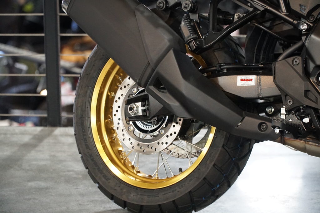 • The new steel frame and sub-frame, and aluminum swingarm are supported by the longest suspension travel and highest ground clearance of any V-Strom model, plus a 21-inch spoke-style front wheel brings true off-road capability.