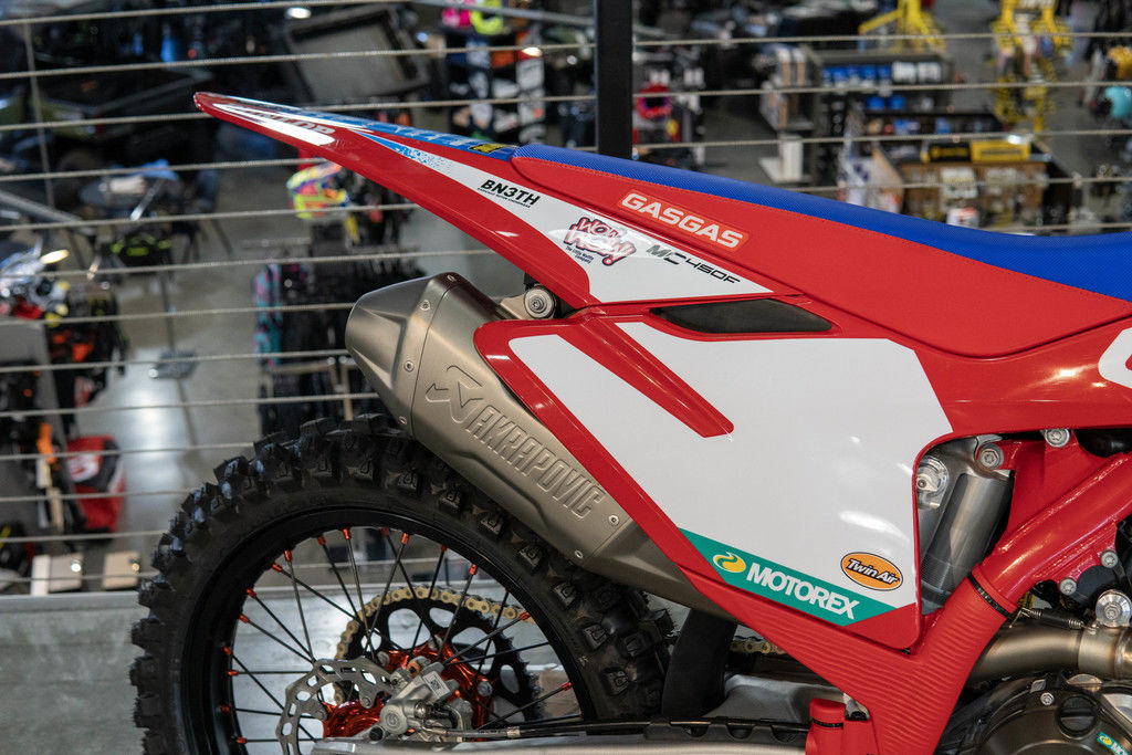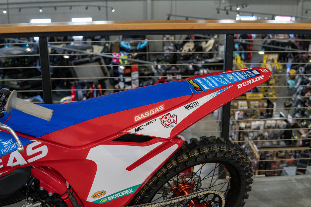 An MC 450F Factory Edition isn't a true replica bike without a full set of race team graphics crowned with the race number of Justin Barcia 51. And the best part is, most of the Troy Lee Designs/Red Bull/GASGAS Factory Racing stickers are applied using in-mold technology when the plastics are made. So there's no peeling, scratching, or staining which means this bike will always stand out from the crowd!