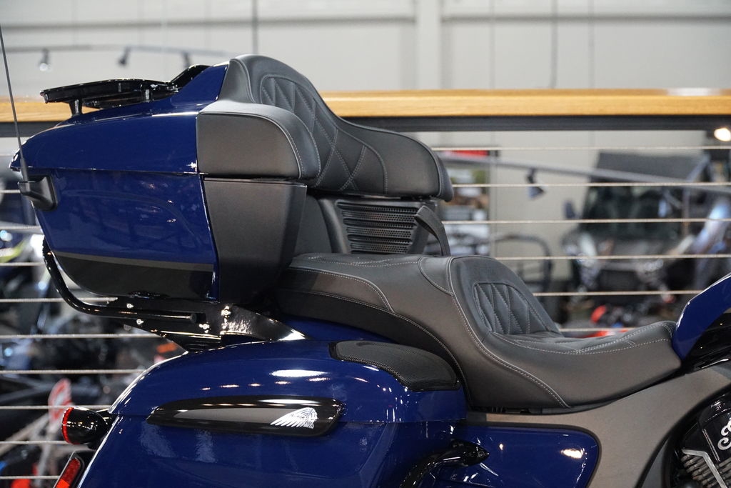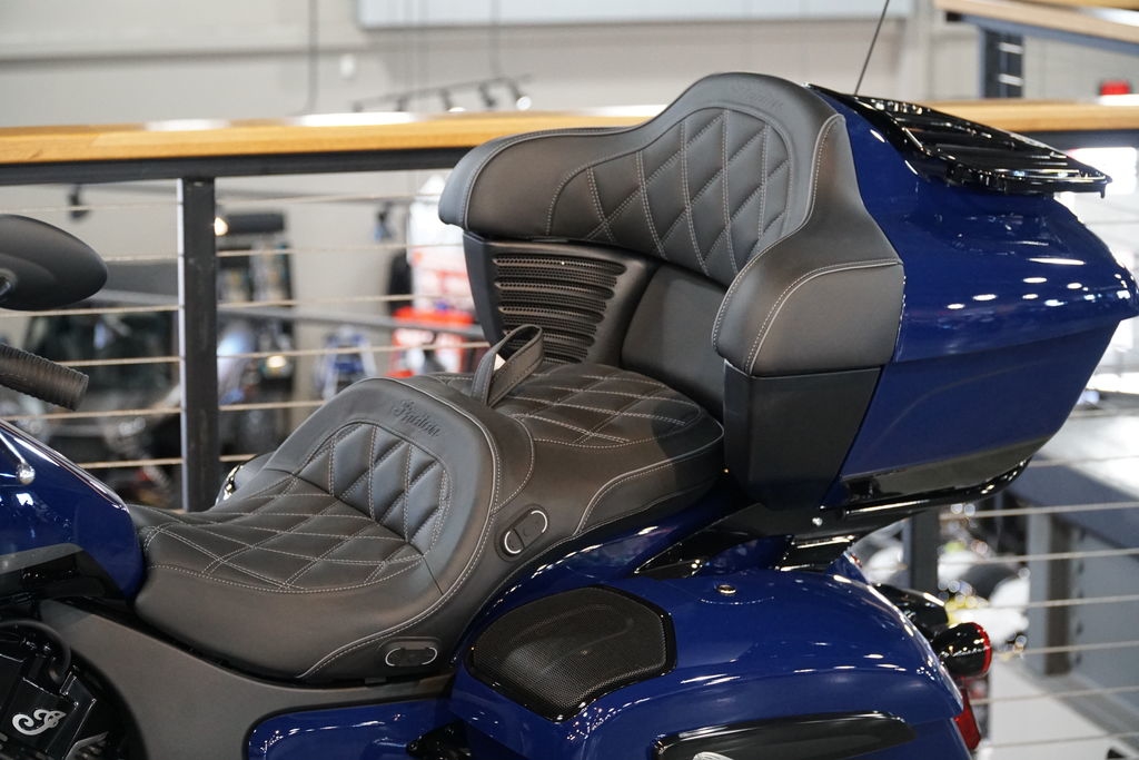 The frame-mounted fairing provides exceptional wind protection with an electronically adjustable windshield. Both the rider and passenger get a heated premium seat. Adjust to your preference with controls on the seat or the infotainment screen.