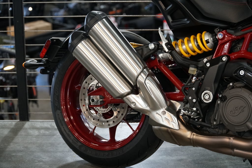 Adjustable 43mm upside down front fork and single exposed rear shock make the FTR stand out. Massive Brembo® 4-piston mono block calipers grab dual 320mm rotors and are specifically tuned for incredible control and braking power.