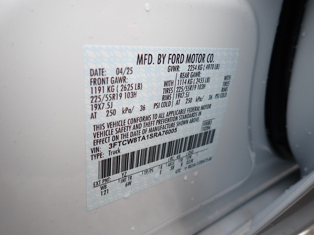 • VIN Number: 3FTCW8TA1SRA76005