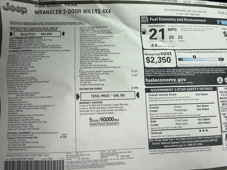 2026 Jeep Wrangler Willys 2 Door Hard Top SUV