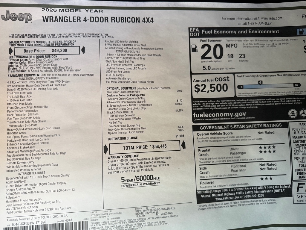 2026 Jeep Wrangler Rubicon 4 Door Hard Top V6 SUV