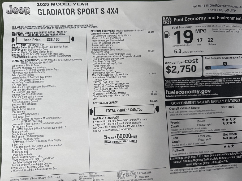 2025 Jeep Gladiator Sport S Hard Top MAX TOW PKG Pickup
