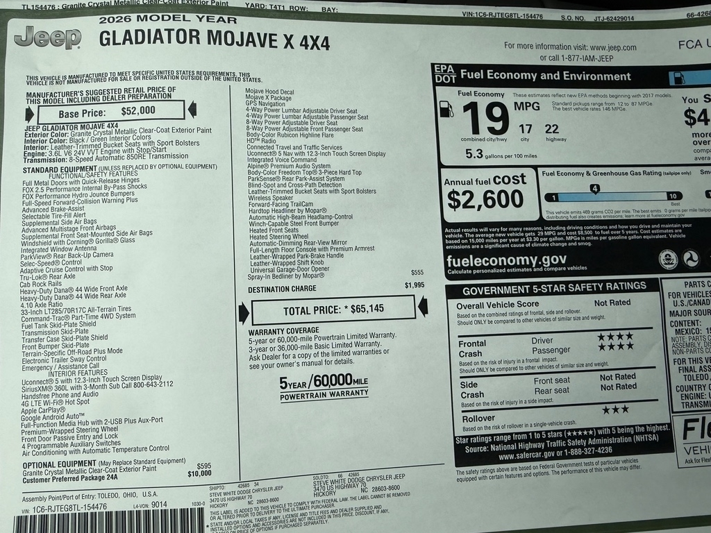 2026 Jeep Gladiator Mojave X Body Color Hard Top Pickup