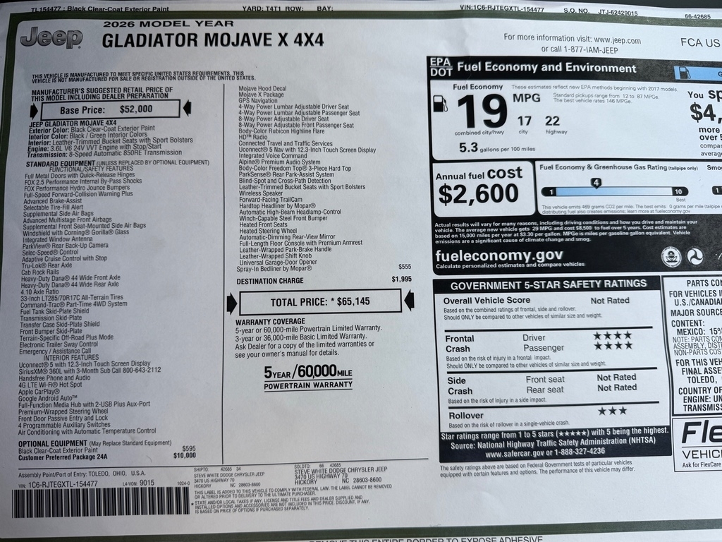 2026 Jeep Gladiator Mojave X Body Color Hard Top Pickup