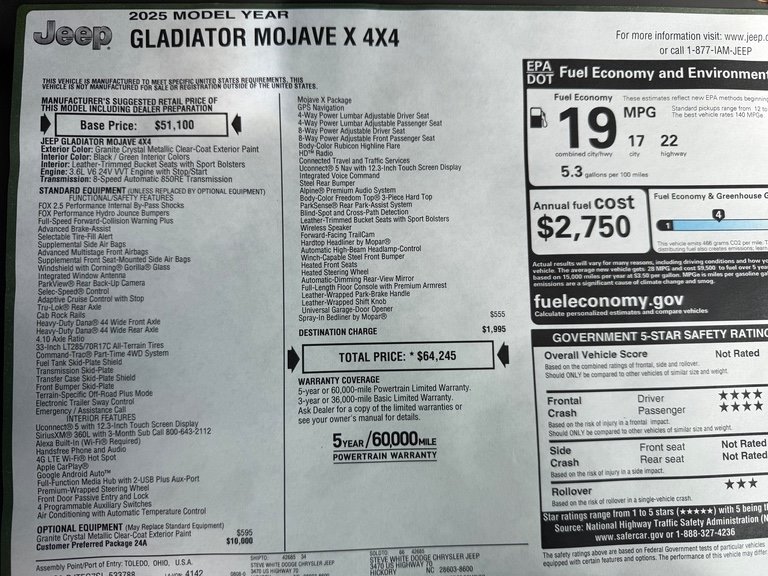 2025 Jeep Gladiator Mojave X Body Color Hard Top Pickup