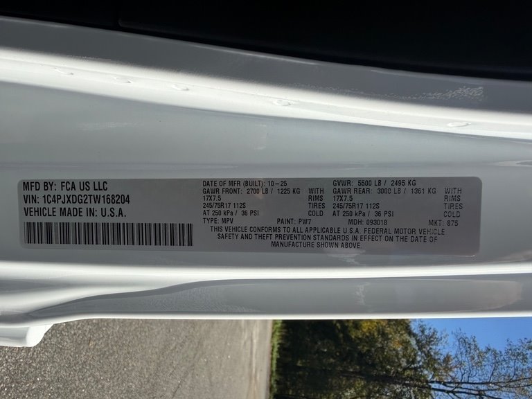 • VIN Number: 1C4PJXDG2TW168204