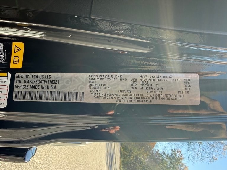 • VIN Number: 1C4PJXEG4TW176321