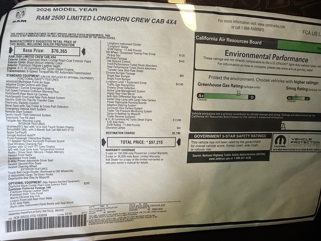 2026 Ram 2500 Longhorn Crew 4WD Cummins SWB Pickup