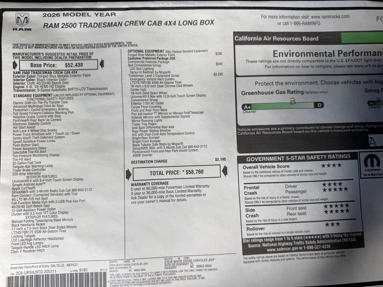 • Style Name: 4X4 Tradesman 4Dr Crew Cab 8 Ft. LB Pickup