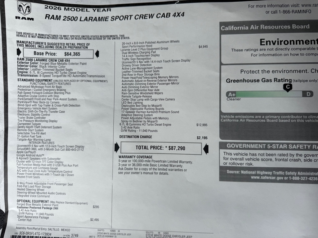 2026 Ram 2500 Laramie Crew CUMMINS 4WD SWB 6.7 L